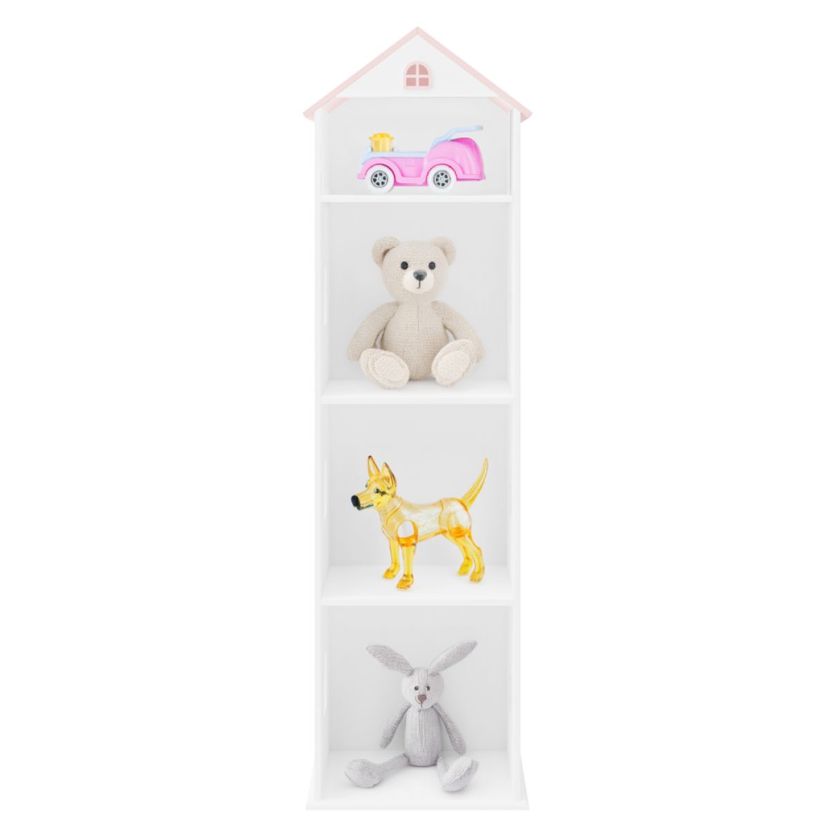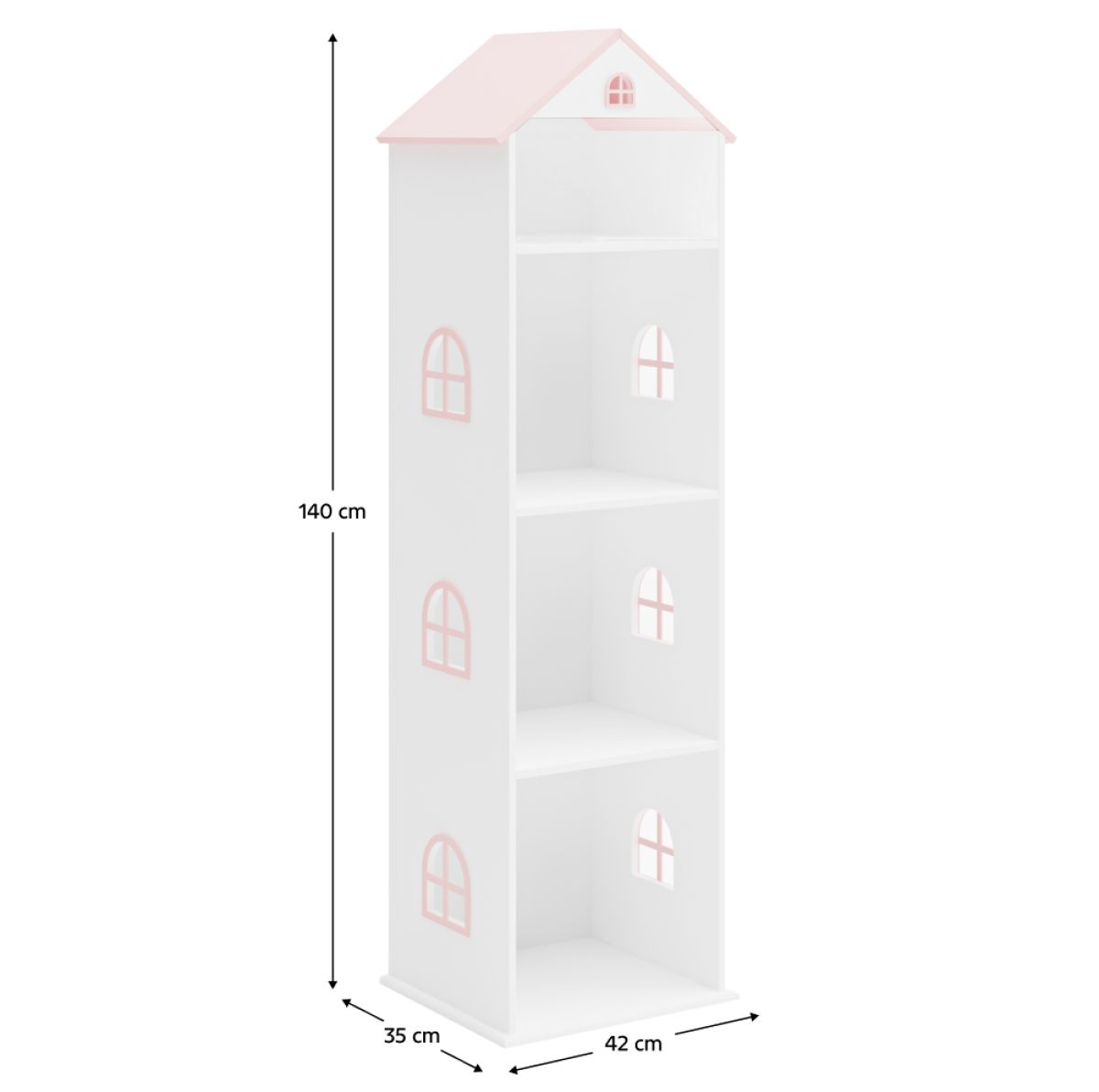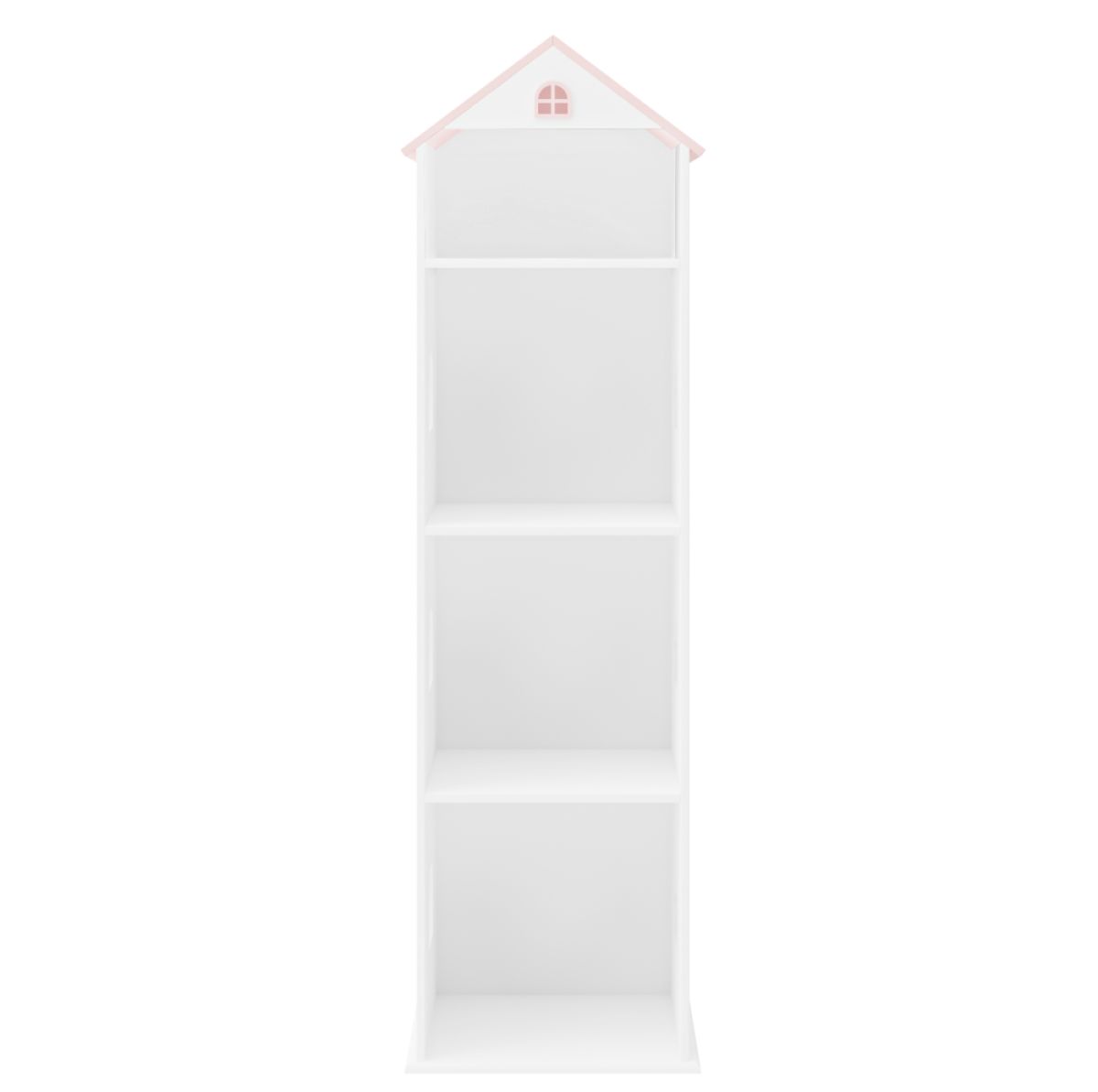 Material: MDF Culoare: alb/roz Dimensiuni (lxAxh): 40x35x140 cm Grosimea materialului: 1,2 cm Portanţa poliţei: 10 kg Bibliotecă pentru copii Raft În formă de casă Design jucăuş Încurajează imaginaţia copiilor Spaţiu de depozitare deschis Poliţe Practic Potrivit pentru depozitarea cărţilor, jucăriilor sau a altor obiecte mici Potrivit pentru camere de copii Nu este potrivit pentru copii sub 3 ani Respectă normele de siguranţă EN 71 Recomandăm fixarea de perete Livrat dezasamblat