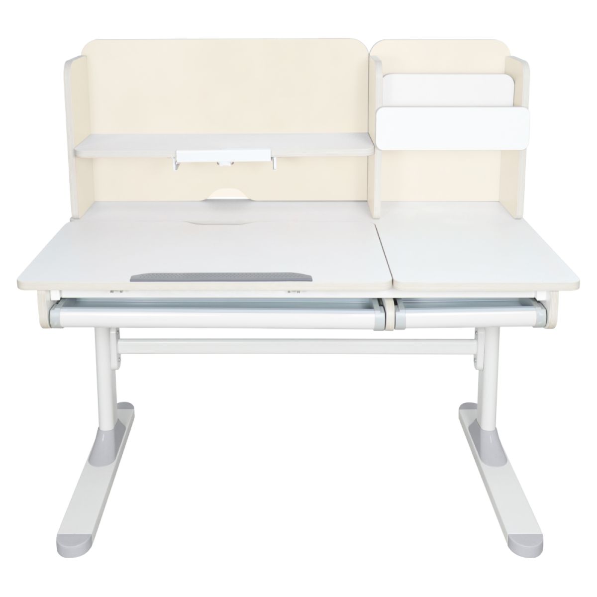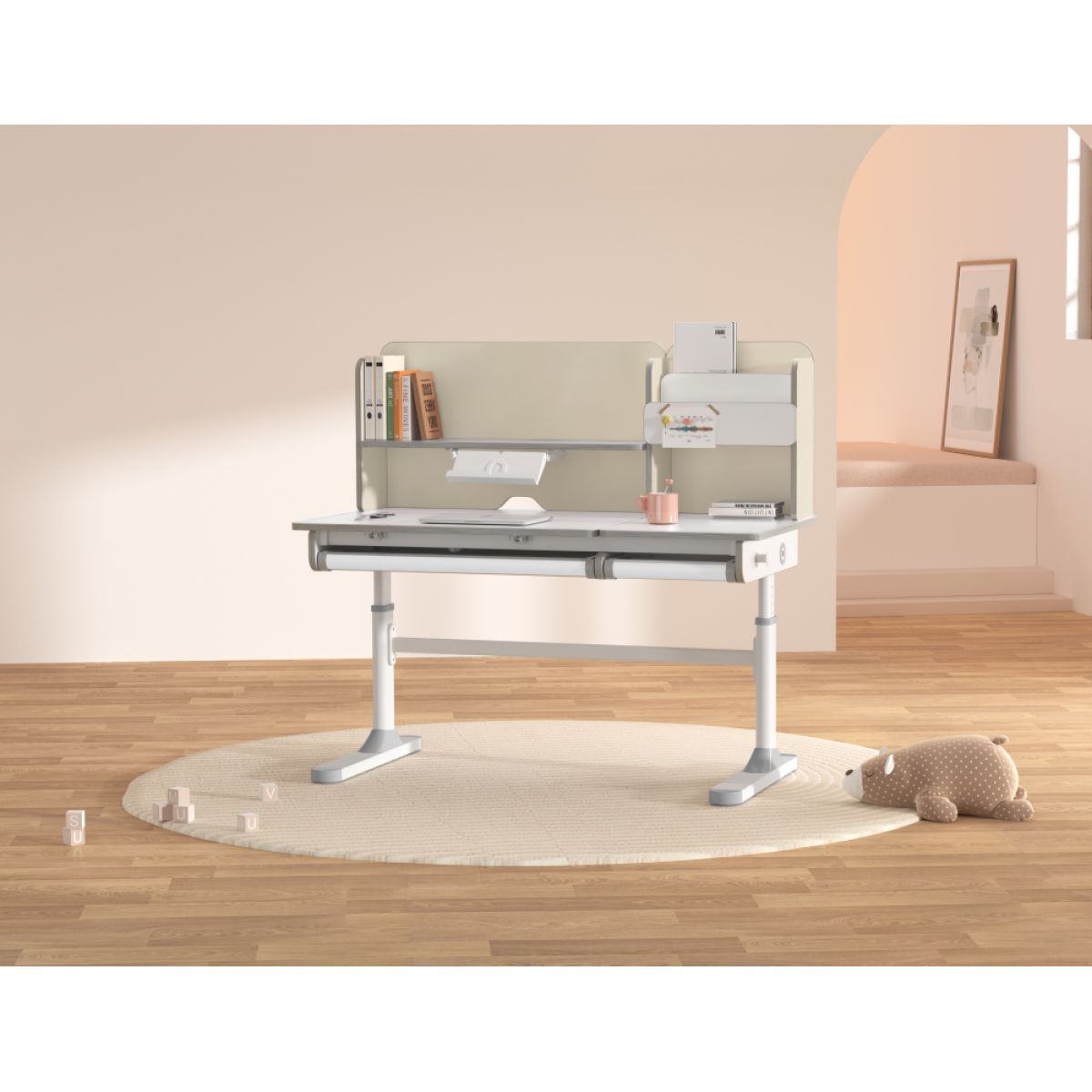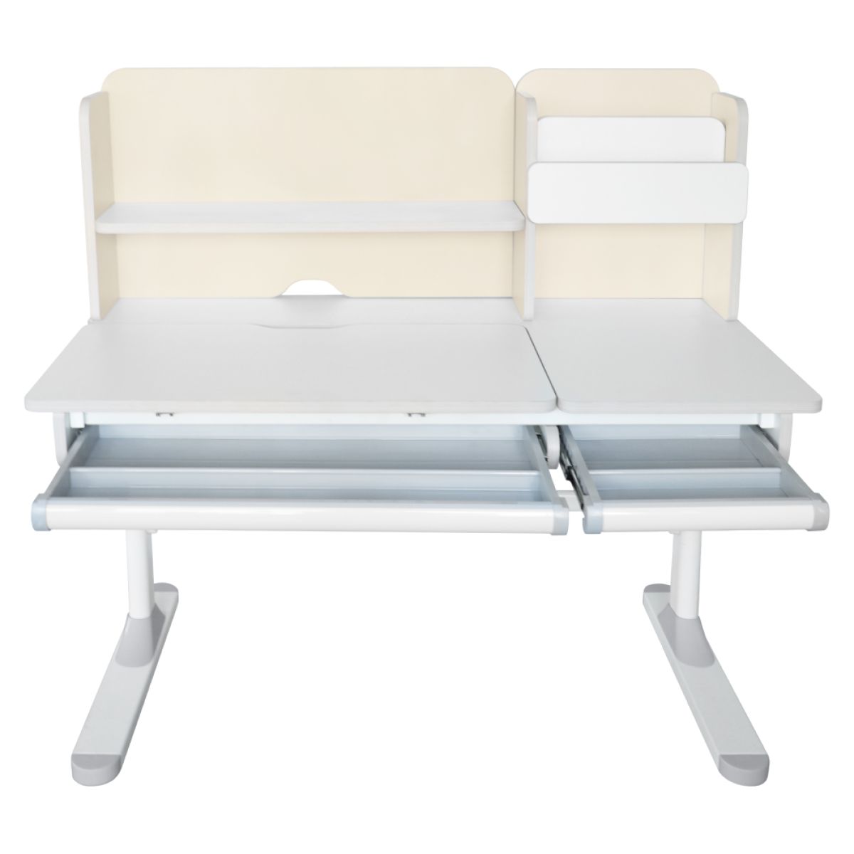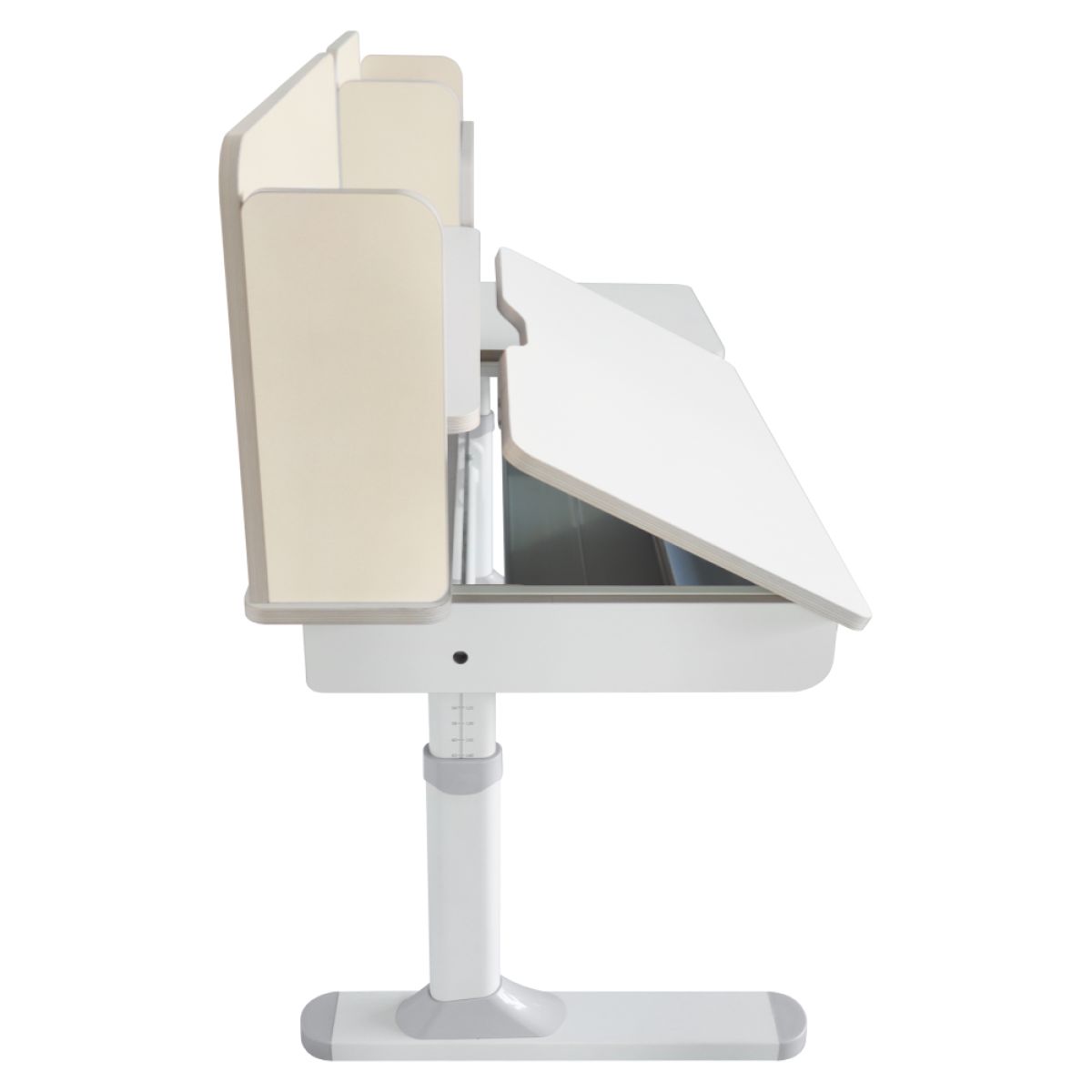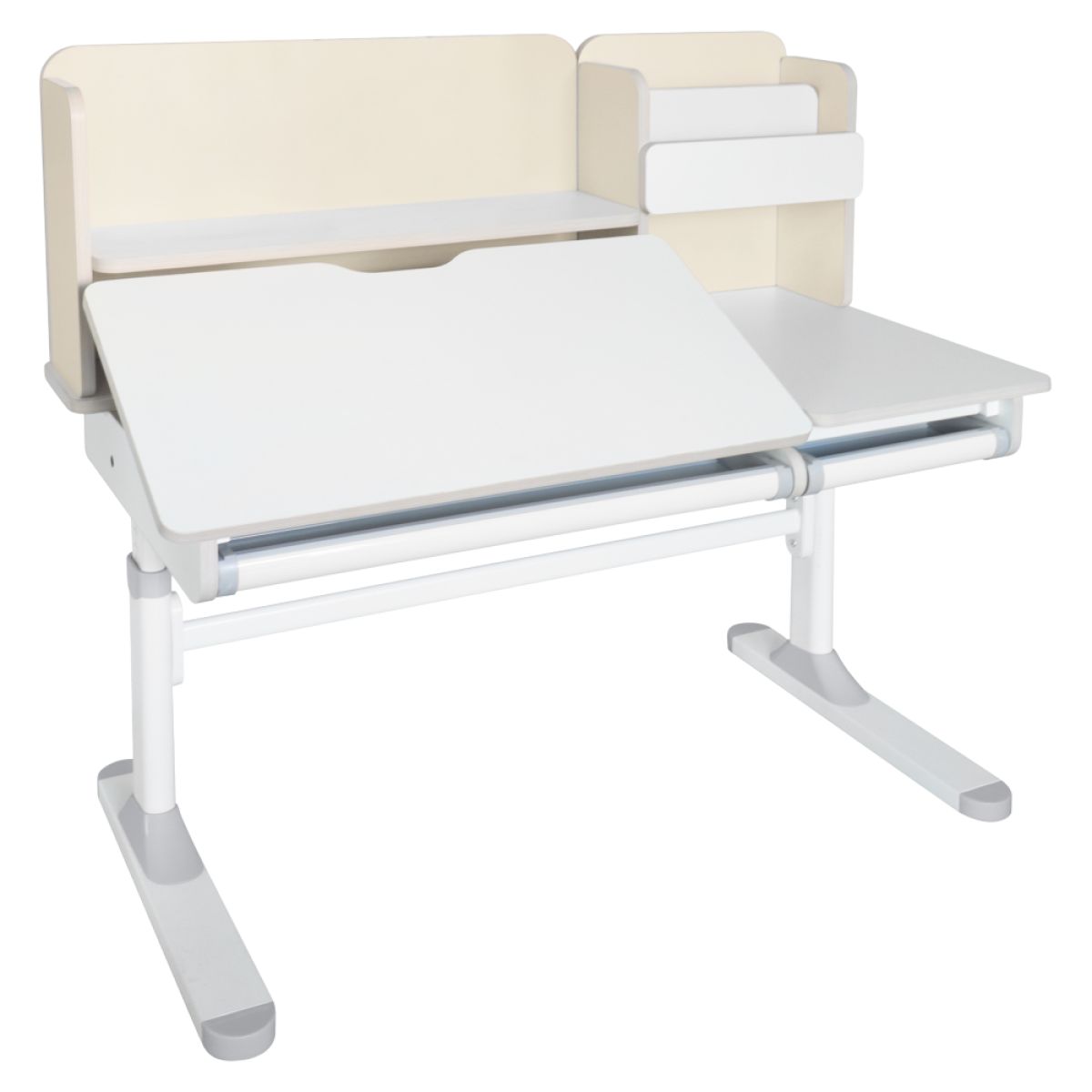 Material: MDF înfoliat/plastic/metal Grosime material MDF: 1,8 cm Culoare: natural/alb Blatul mesei are margini ABS. Dimensiunile mesei (lxAxh): 120x61x99-120 cm Lăţime bază: 110,5 cm Dimensiunile panoului din spate (lxh): 118,5x40 cm Adâncimea plăcii poziţionabile a mesei: 40 cm Înălţimea blatului de lucru: 54-76 cm Înclinare reglabilă a blatului de lucru Înclinaţie blat de lucru 0-40 Lăţimea plăcii reglabile: 80 cm Portanţă masă: 80 kg Înălţime reglabilă a mesei: Reglarea manuală a înălţimii mesei cu ajutorul manivelei Posibilitatea de a monta manivela pe partea dreaptă sau stângă Înălţimea mesei şi înclinarea suprafeţei de lucru sunt reglate folosind pistonul de gaz şi pârghia 2 sertare spaţioase cu compartiment Portanţa sertarului mai mic: 2 kg Portanţa sertarului mai mare: 10 kg Panoul din spate include poliţe, un suport pentru cărţi şi un orificiu pentru trecerea cablurilor Există un cuier pe partea laterală unde vă puteţi agăţa geanta Potrivit de la 4 la 16 ani Pentru copii şi adolescenţi la o înălţime de 110 - 175 cm Livrată dezasamblată