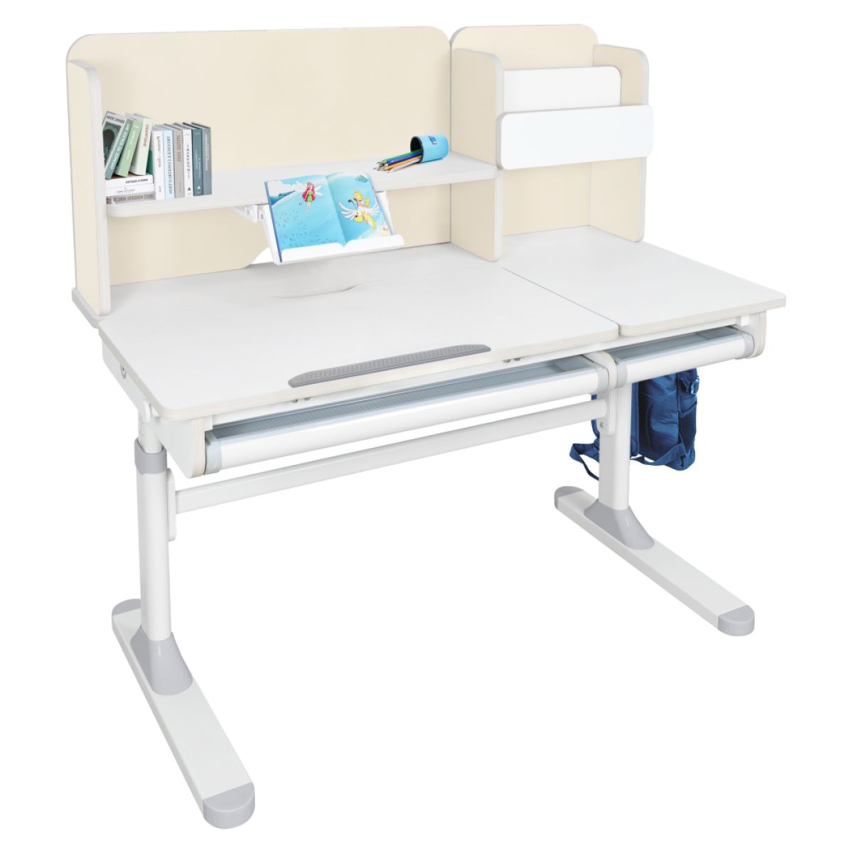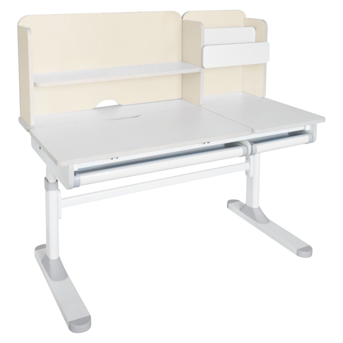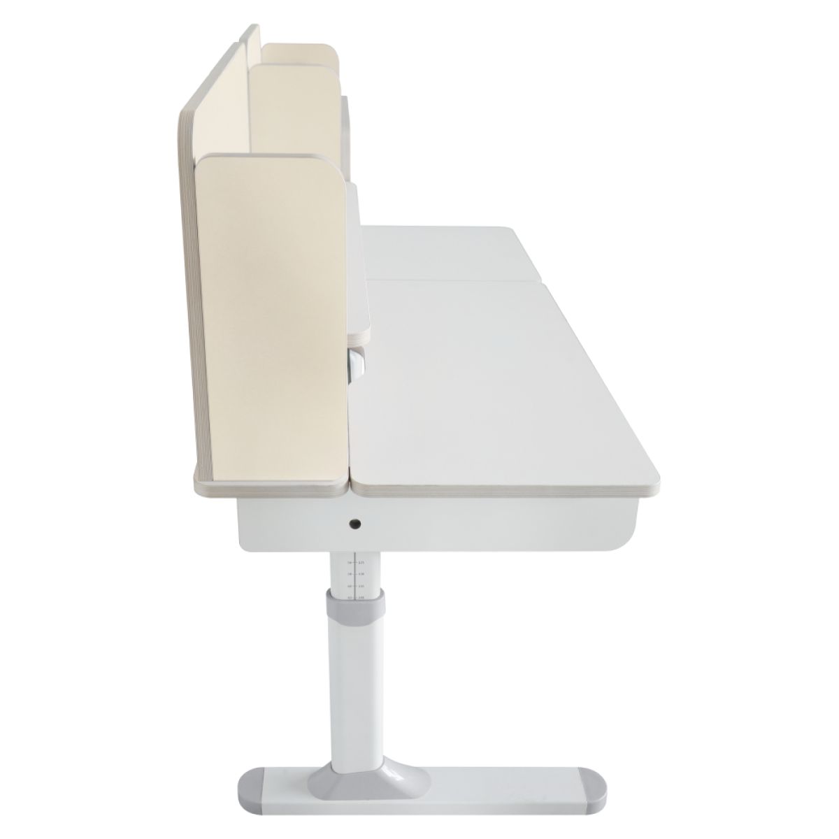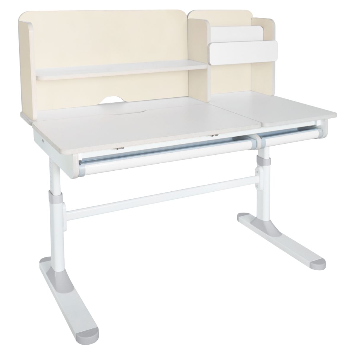 Material: MDF înfoliat/plastic/metal Grosime material MDF: 1,8 cm Culoare: natural/alb Blatul mesei are margini ABS. Dimensiunile mesei (lxAxh): 120x61x99-120 cm Lăţime bază: 110,5 cm Dimensiunile panoului din spate (lxh): 118,5x40 cm Adâncimea plăcii poziţionabile a mesei: 40 cm Înălţimea blatului de lucru: 54-76 cm Înclinare reglabilă a blatului de lucru Înclinaţie blat de lucru 0-40 Lăţimea plăcii reglabile: 80 cm Portanţă masă: 80 kg Înălţime reglabilă a mesei: Reglarea manuală a înălţimii mesei cu ajutorul manivelei Posibilitatea de a monta manivela pe partea dreaptă sau stângă Înălţimea mesei şi înclinarea suprafeţei de lucru sunt reglate folosind pistonul de gaz şi pârghia 2 sertare spaţioase cu compartiment Portanţa sertarului mai mic: 2 kg Portanţa sertarului mai mare: 10 kg Panoul din spate include poliţe, un suport pentru cărţi şi un orificiu pentru trecerea cablurilor Există un cuier pe partea laterală unde vă puteţi agăţa geanta Potrivit de la 4 la 16 ani Pentru copii şi adolescenţi la o înălţime de 110 - 175 cm Livrată dezasamblată