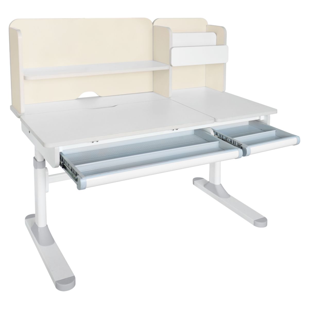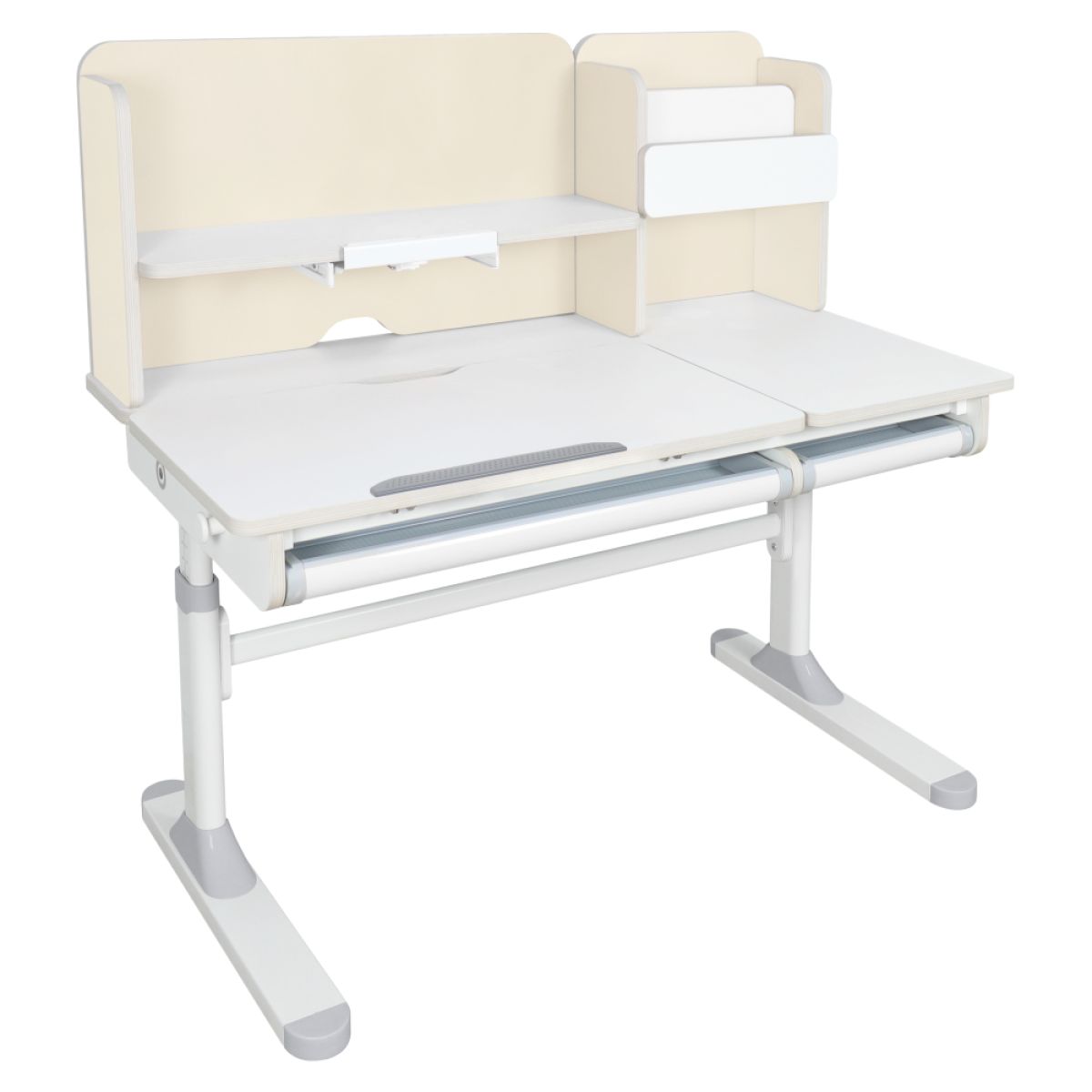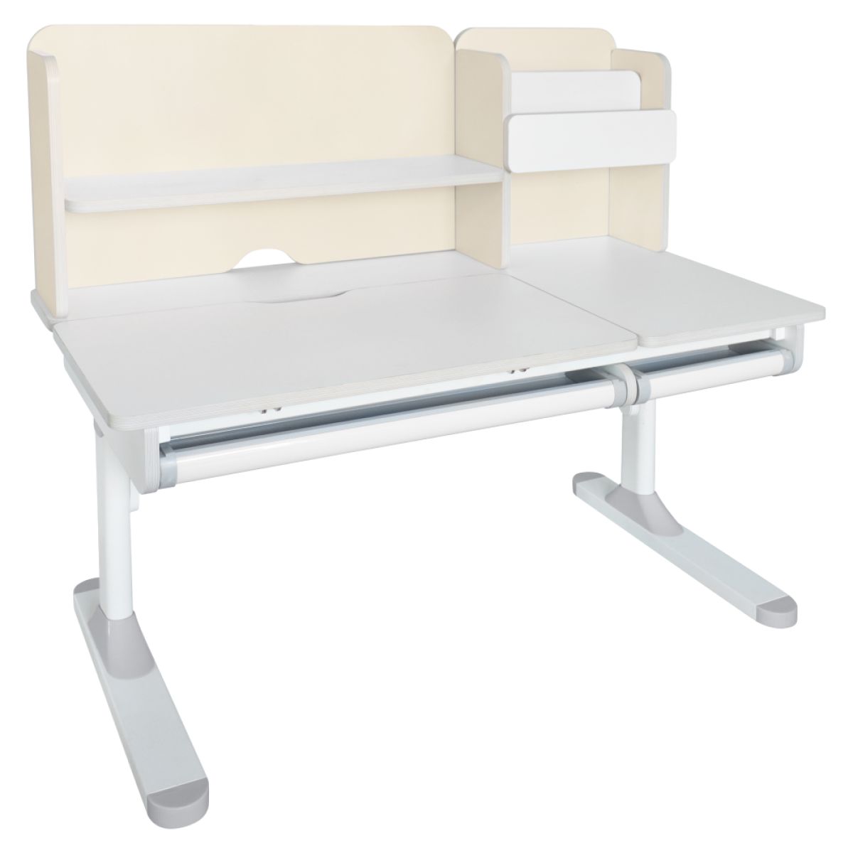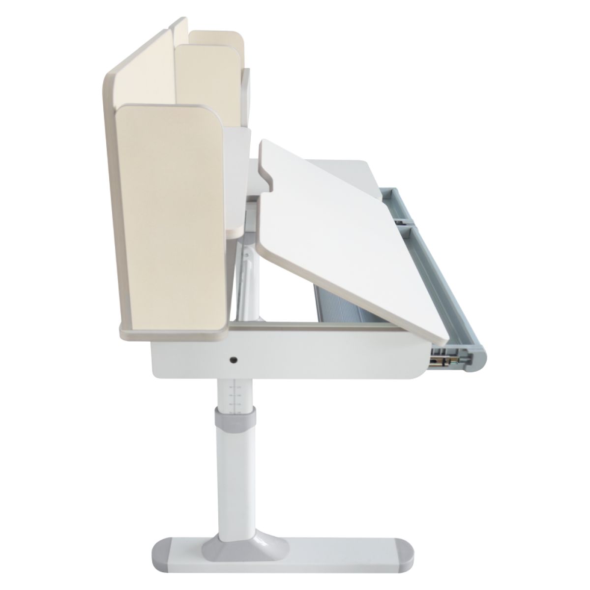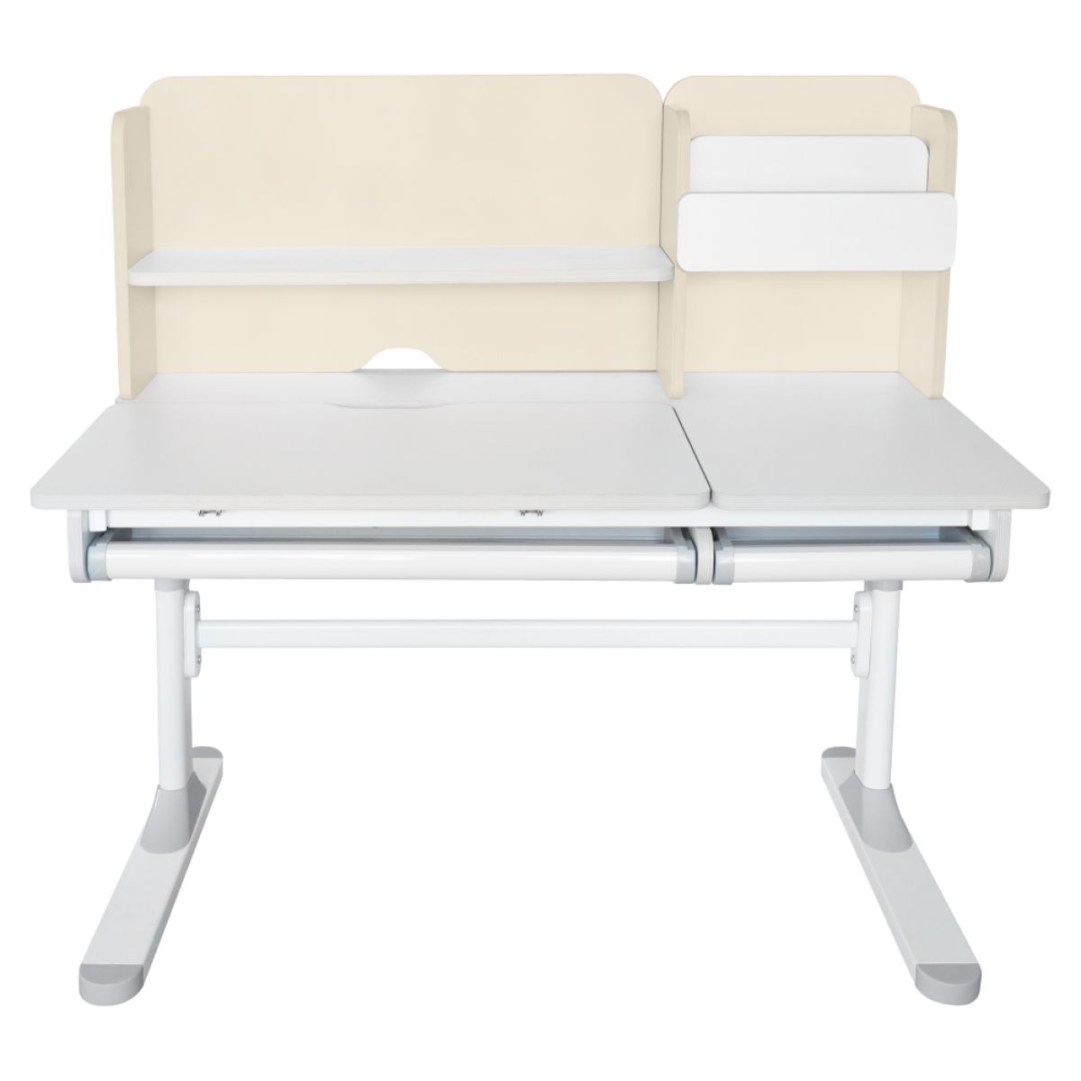 Material: MDF înfoliat/plastic/metal Grosime material MDF: 1,8 cm Culoare: natural/alb Blatul mesei are margini ABS. Dimensiunile mesei (lxAxh): 120x61x99-120 cm Lăţime bază: 110,5 cm Dimensiunile panoului din spate (lxh): 118,5x40 cm Adâncimea plăcii poziţionabile a mesei: 40 cm Înălţimea blatului de lucru: 54-76 cm Înclinare reglabilă a blatului de lucru Înclinaţie blat de lucru 0-40 Lăţimea plăcii reglabile: 80 cm Portanţă masă: 80 kg Înălţime reglabilă a mesei: Reglarea manuală a înălţimii mesei cu ajutorul manivelei Posibilitatea de a monta manivela pe partea dreaptă sau stângă Înălţimea mesei şi înclinarea suprafeţei de lucru sunt reglate folosind pistonul de gaz şi pârghia 2 sertare spaţioase cu compartiment Portanţa sertarului mai mic: 2 kg Portanţa sertarului mai mare: 10 kg Panoul din spate include poliţe, un suport pentru cărţi şi un orificiu pentru trecerea cablurilor Există un cuier pe partea laterală unde vă puteţi agăţa geanta Potrivit de la 4 la 16 ani Pentru copii şi adolescenţi la o înălţime de 110 - 175 cm Livrată dezasamblată