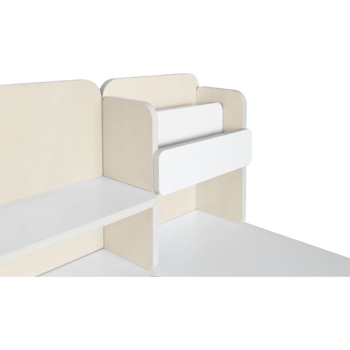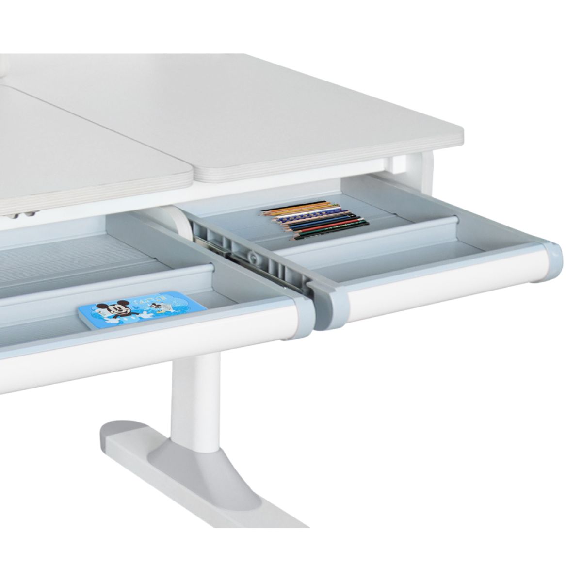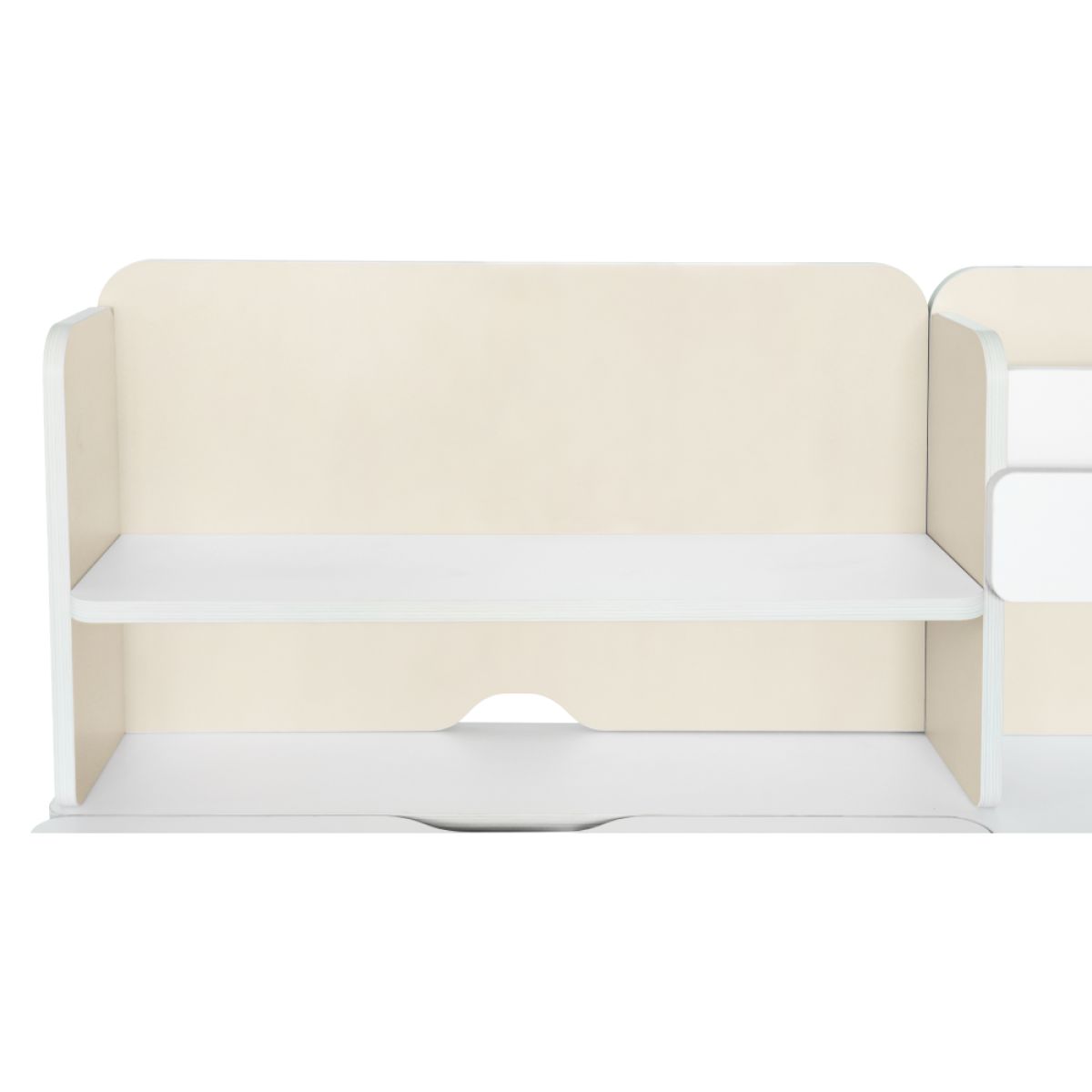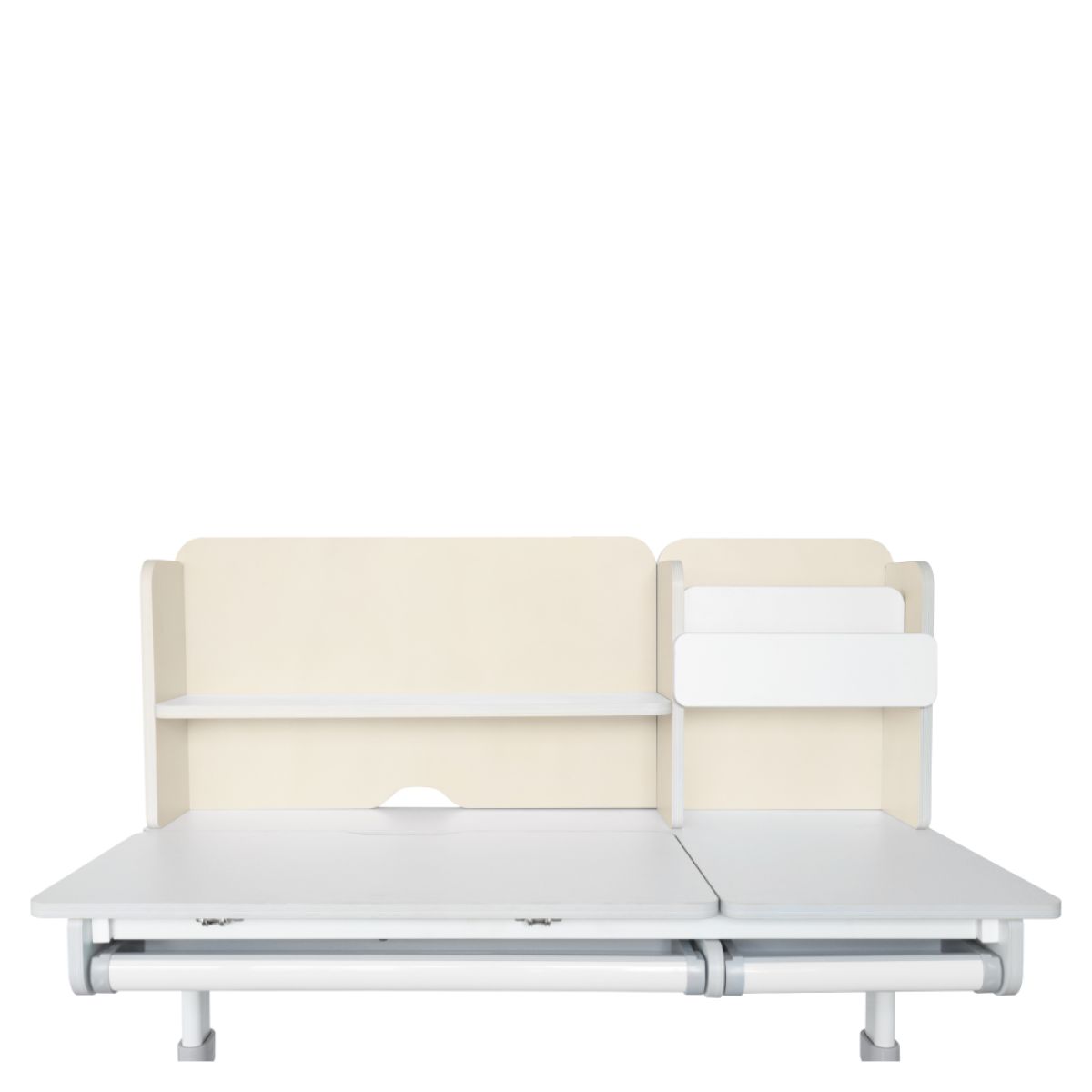 Material: MDF înfoliat/plastic/metal Grosime material MDF: 1,8 cm Culoare: natural/alb Blatul mesei are margini ABS. Dimensiunile mesei (lxAxh): 120x61x99-120 cm Lăţime bază: 110,5 cm Dimensiunile panoului din spate (lxh): 118,5x40 cm Adâncimea plăcii poziţionabile a mesei: 40 cm Înălţimea blatului de lucru: 54-76 cm Înclinare reglabilă a blatului de lucru Înclinaţie blat de lucru 0-40 Lăţimea plăcii reglabile: 80 cm Portanţă masă: 80 kg Înălţime reglabilă a mesei: Reglarea manuală a înălţimii mesei cu ajutorul manivelei Posibilitatea de a monta manivela pe partea dreaptă sau stângă Înălţimea mesei şi înclinarea suprafeţei de lucru sunt reglate folosind pistonul de gaz şi pârghia 2 sertare spaţioase cu compartiment Portanţa sertarului mai mic: 2 kg Portanţa sertarului mai mare: 10 kg Panoul din spate include poliţe, un suport pentru cărţi şi un orificiu pentru trecerea cablurilor Există un cuier pe partea laterală unde vă puteţi agăţa geanta Potrivit de la 4 la 16 ani Pentru copii şi adolescenţi la o înălţime de 110 - 175 cm Livrată dezasamblată