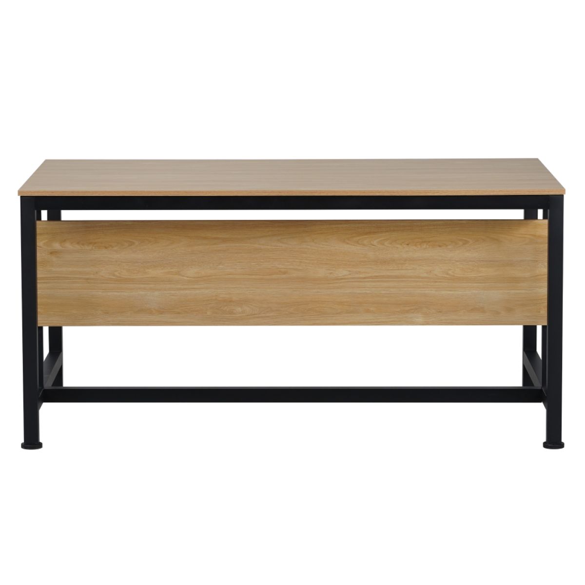 Material: MDF înfoliat/metal Culoare: stejar/neagră Dimensiuni (lxAxh): 150x80x72 cm Grosimea materialului MDF: 1,5 cm Portanţa: 80 kg Design modern Utilizare versatilă Poate fi combinat cu rafturile KILIS NEW, KELIN Livrat dezasamblat