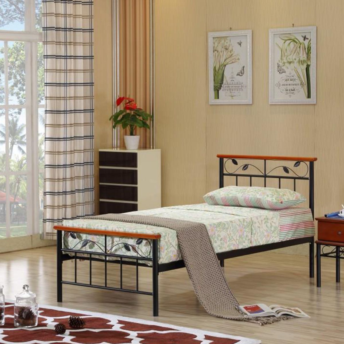 Cadru pat cu somieră lamelară, lemn cireş/ metal, 90x200 cm, MORENA