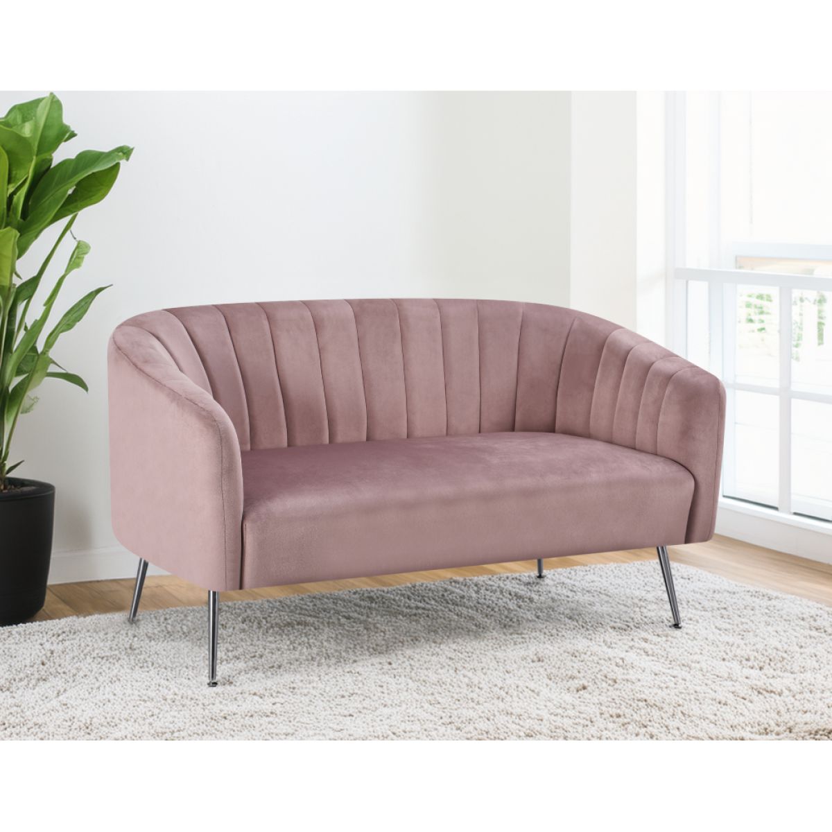 Canapea de design cu 2 locuri, ţesătură Velvet roz/crom-argintiu, BAGY