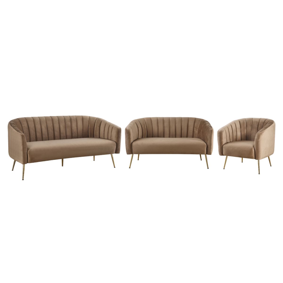Canapea de design cu 3 locuri, ţesătură Velvet maro/gold crom-auriu, BAGY