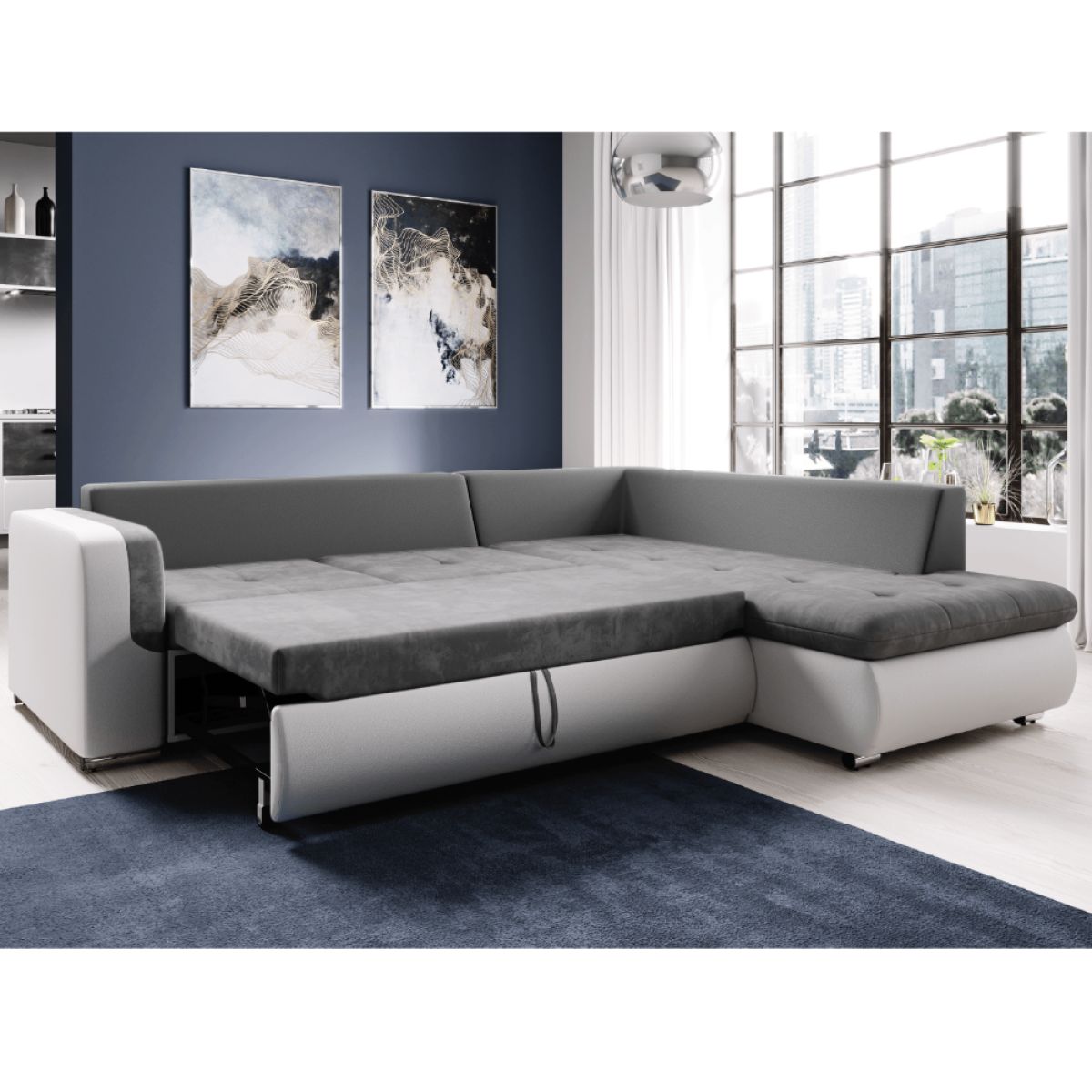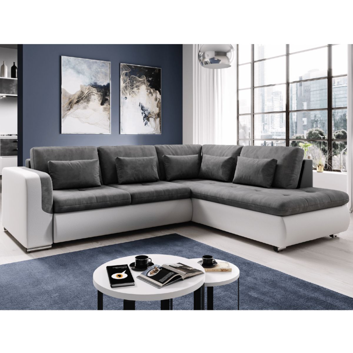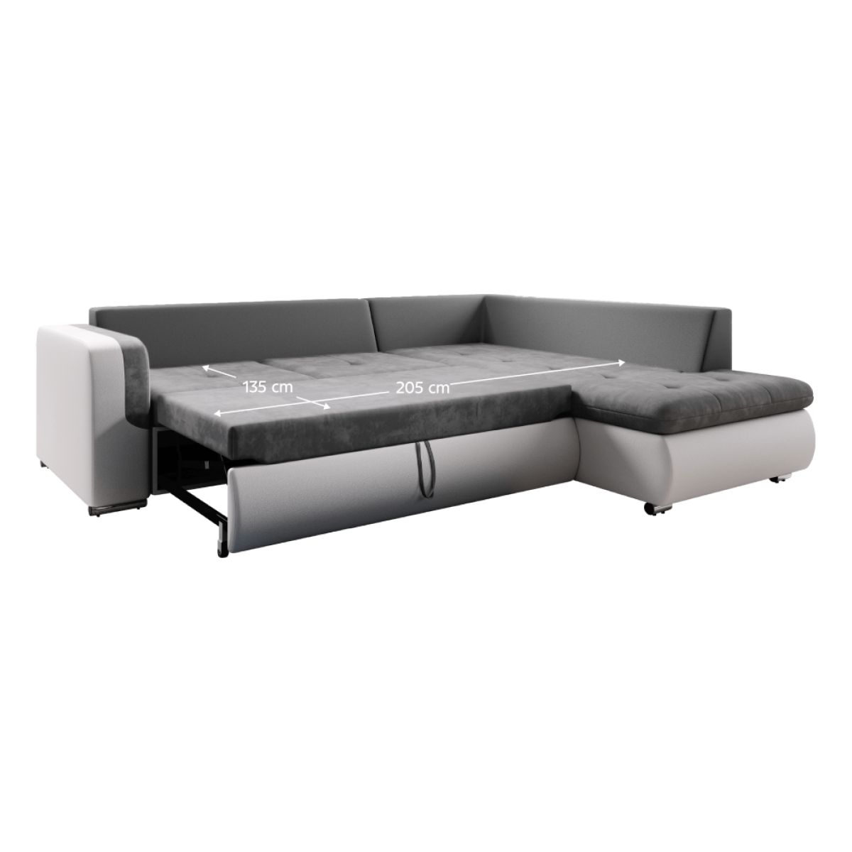 Canapea extensibilă, alb/gri, dreapta, FURUD L ROH