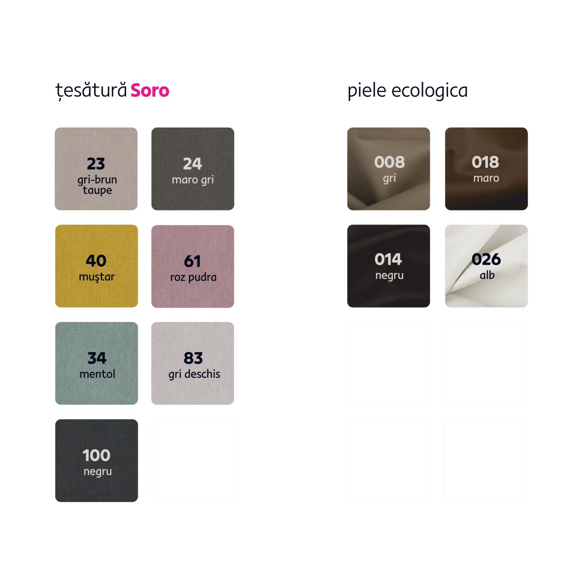 Material: piele ecologică / ţesătură Soro 93 Rezistenţa ţesăturii conform testului Martindale: 90.000 de cicluri de frecare Rezistenţa pielii ecologice conform testului Martindale: 100.000 de cicluri de frecare Culoare: albă/gri Dimensiuni (LxAxÎ): 355x205/162x65/76 cm Suprafaţa pentru dormit (LxL): 135x285 cm Înălţime scaun: 41 cm Adâncime scaun: 48/63 cm Lăţime otoman: 96 cm Lăţime scaun: 135 cm Colţar extensibil în formă de U tapiţat integral Capacitate de susţinere per persoană: 90 kg Cu picioare Material picioare: plastic Culoare picioare: argintiu Înălţime picioare: 4 cm Pernele sunt incluse Dimensiunea pernelor mari (LxL): 86x40 cm Dimensiunea pernelor mici (LxL): 66x40 cm Variantă pentru partea stângă Umplutură: arcuri ondulate + spuma poliuretanică, Livrat demontat, Posibilitatea de a comanda in 4 nuanţe de culoare ale pielii ecologice si 7 nuanţe de culoare ale materialului Soro la preţul de 6 219,-. La plasarea comenzii, specificaţi direct în notiţe nuanţa de culoare aleasă. La o comandă individuală, este necesară o plată în avans de 10% din suma respectivă. După achitarea avansului, comanda dumneavoastră va intra în producţie. Termenul de livrare 6-8 săptămâni.