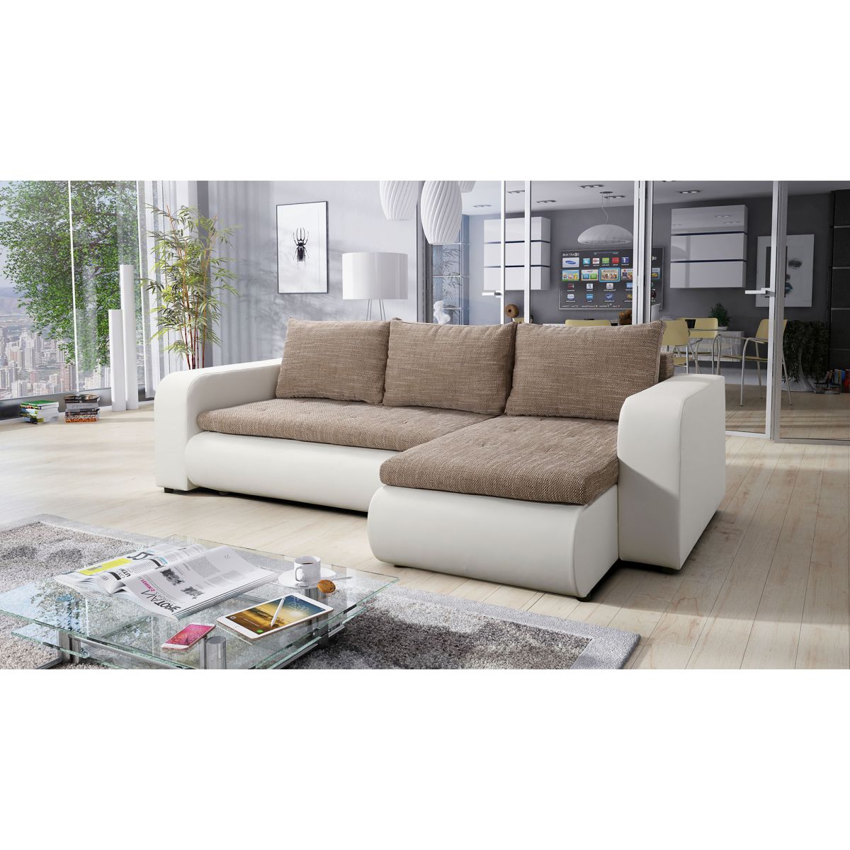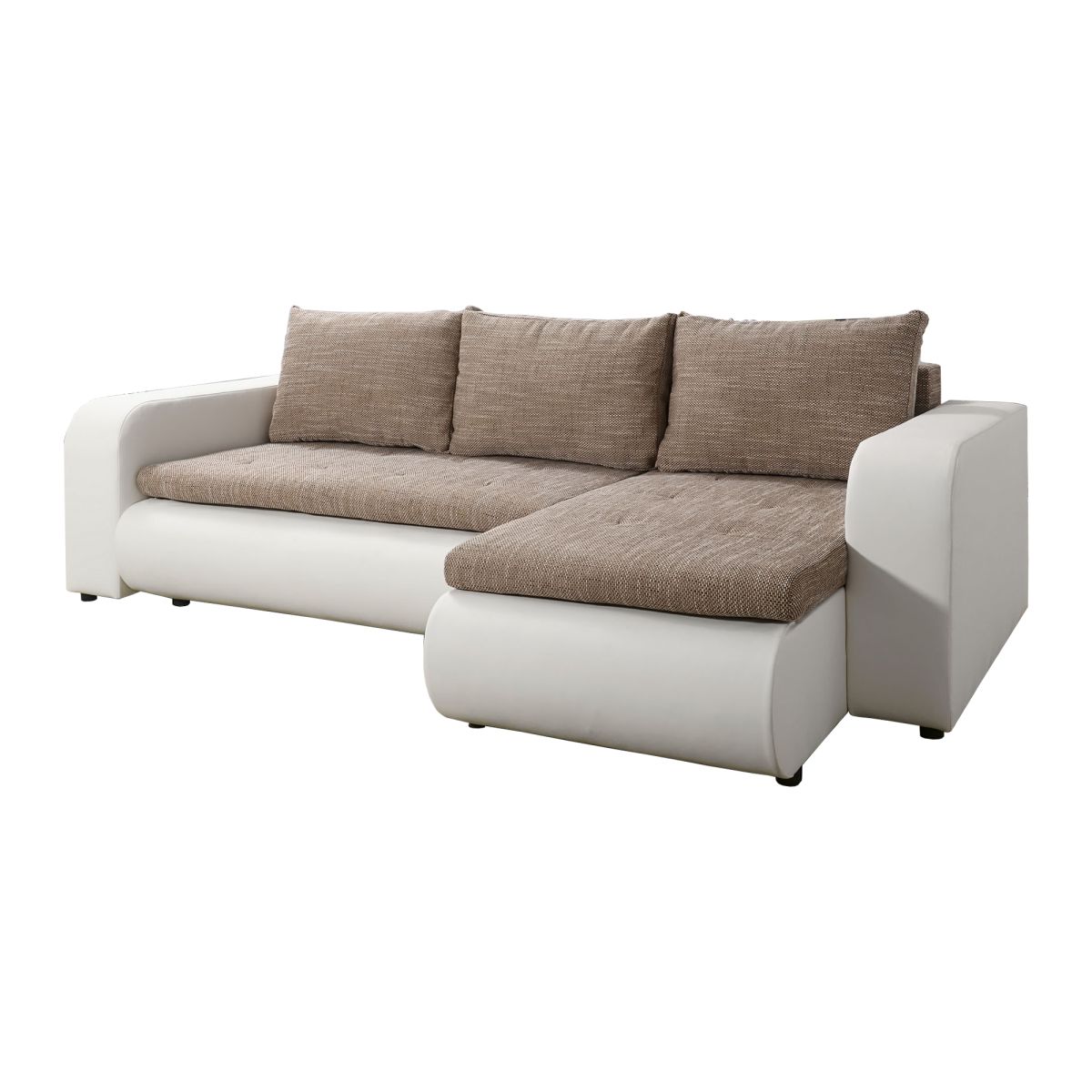 Canapea extensibilă, alb/maro, dreapta, BURAN ROH