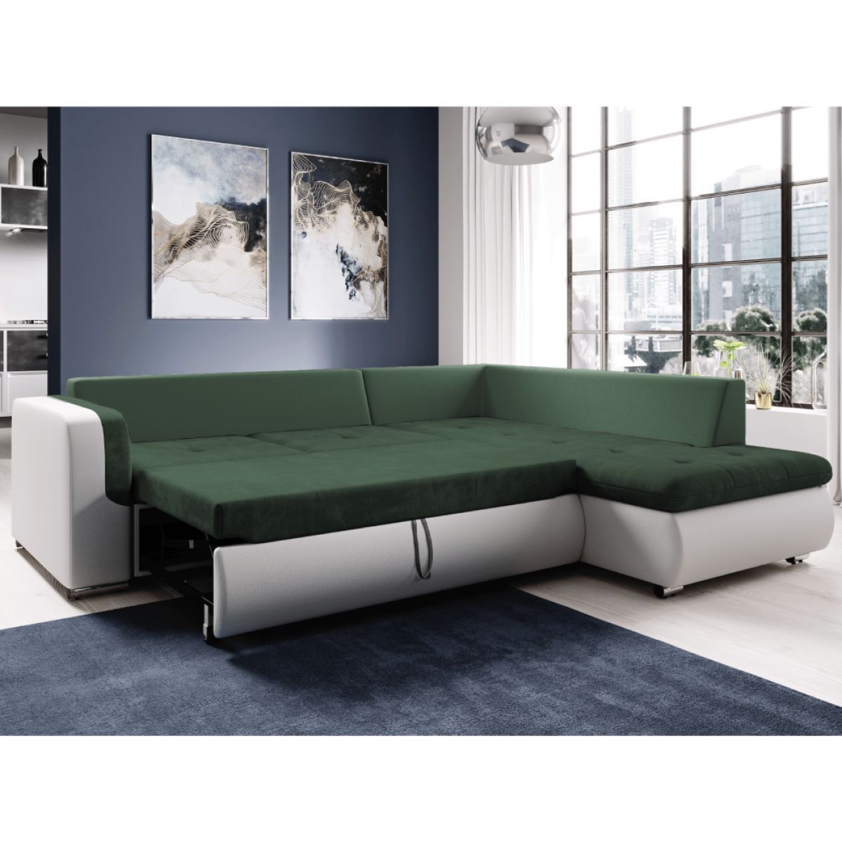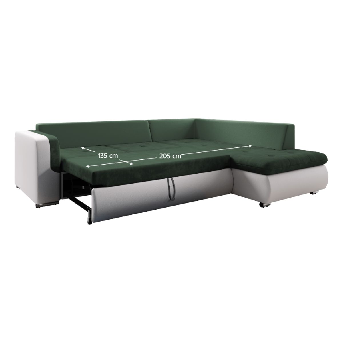 Canapea extensibilă, alb/verde, dreapta, FURUD L ROH