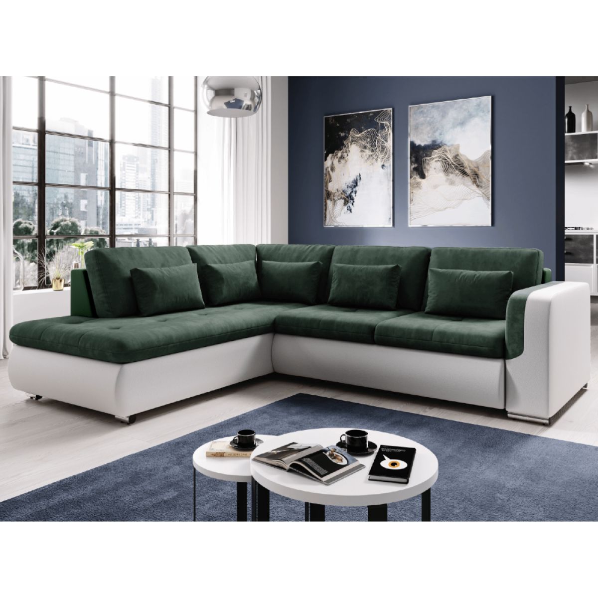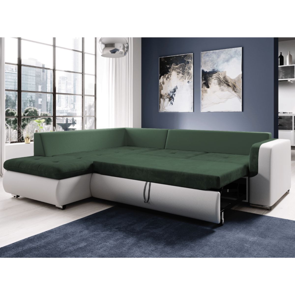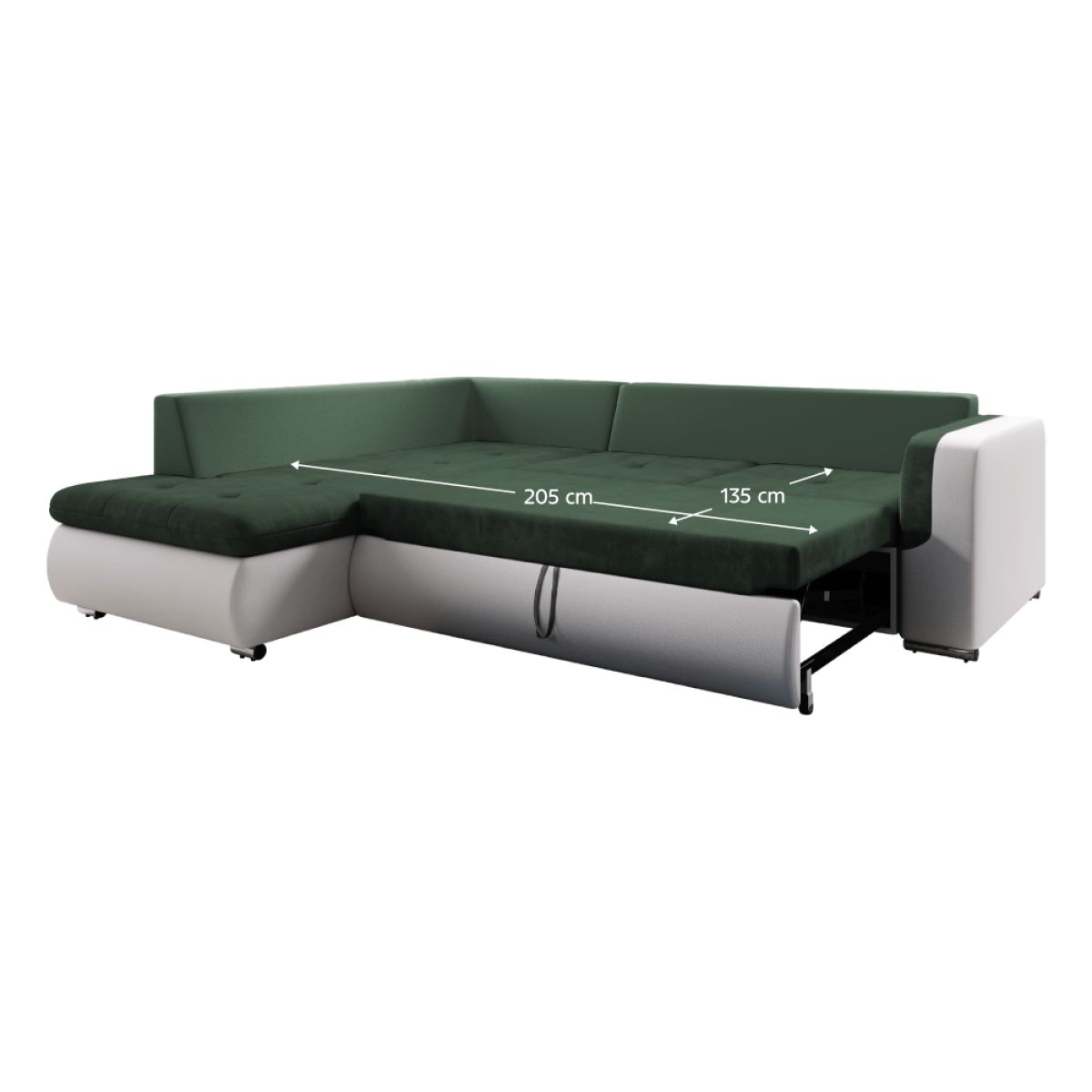 Canapea extensibilă, alb/verde, stânga, FURUD L ROH