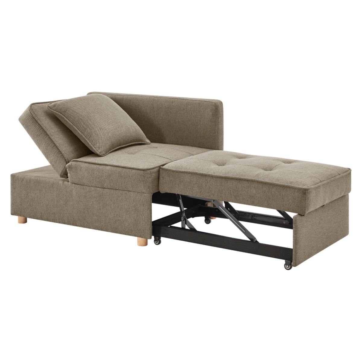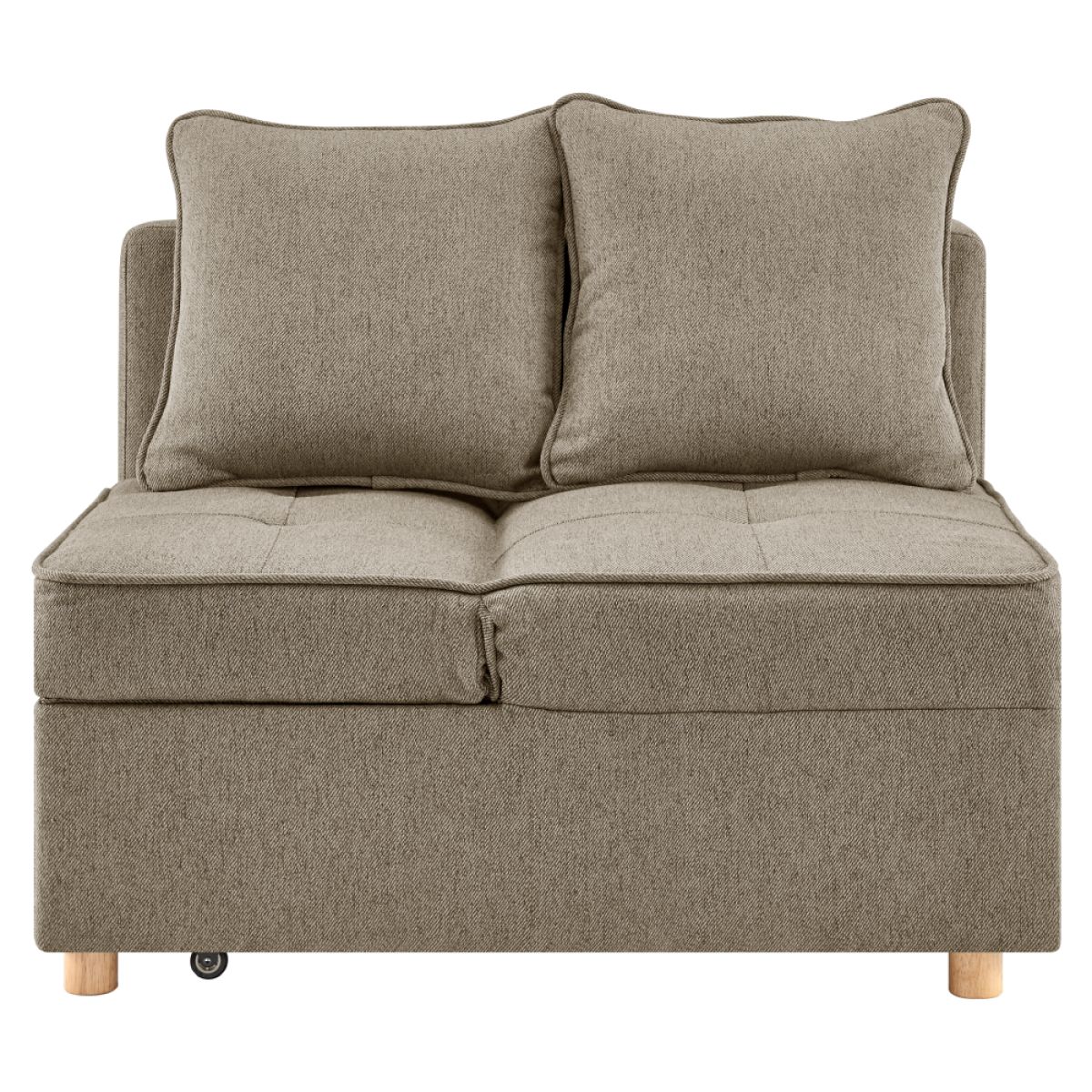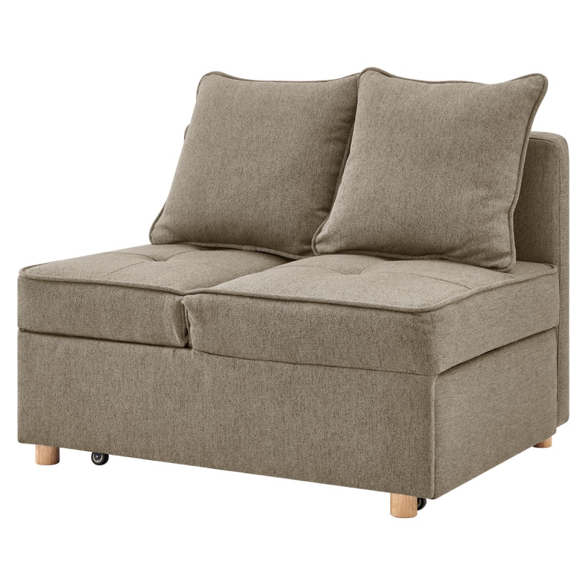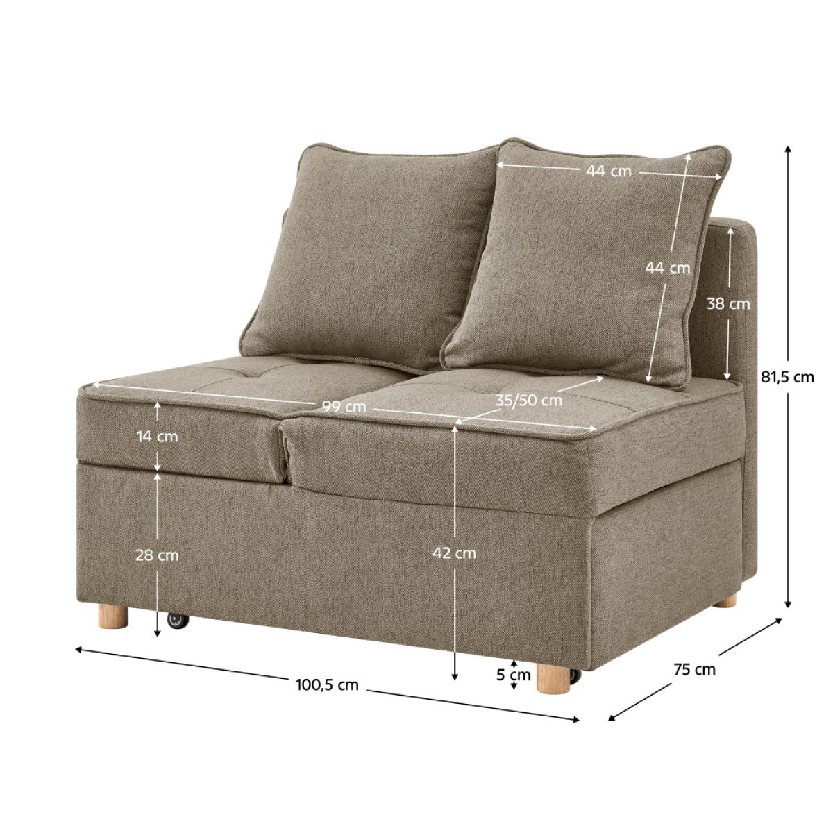 Material: ţesătură Neve 16/lemn/metal Rezistenţa ţesăturii la frecare conform testului Martindale: 80 000 de cicluri de frecare Culoare: bej/maro Dimensiuni (lxAxh): 100,5x75x81,5 cm Suprafaţa pentru dormit (lxL): 66x184 cm Înălţimea părţii de şezut: 42 cm Înălţimea părţii de şezut fără saltea: 28 cm Adâncime părţii de şezut: 35 cm Adâncimea părţii de şezut fără perne: 50 cm Lăţimea părţii de şezut: 99 cm Lăţime după extindere: 184 cm Înălţime spătar: 38 cm Lăţime spătar: 99 cm Înălţimea saltelei: 14 cm Portanţă: 90 cm Cu picioare Material picioare: lemn de fag Culoare picioare: naturală Înălţimea compartimentului inferior de la podea: 5 cm Canapea cu 2 locuri Complet tapiţată Extensibilă Tetieră reglabilă în 5 poziţii de poziţionare Livrată cu perne Dimensiuni perne (lxAxh): 44x15x44 cm Cusătură decorativă Practică, Design modern şi practic Livrată dezasamblată