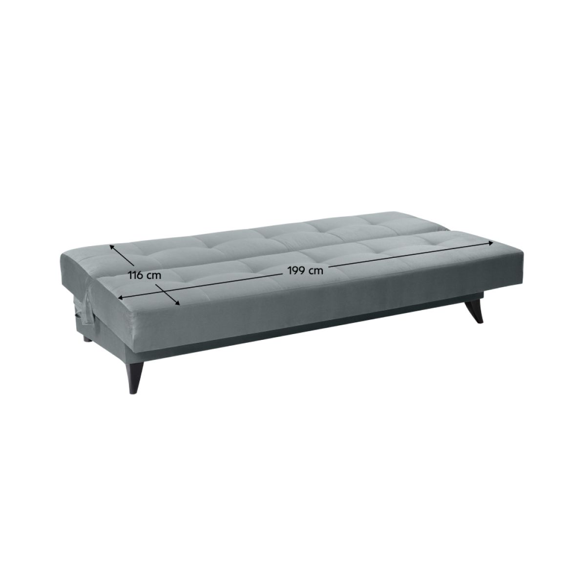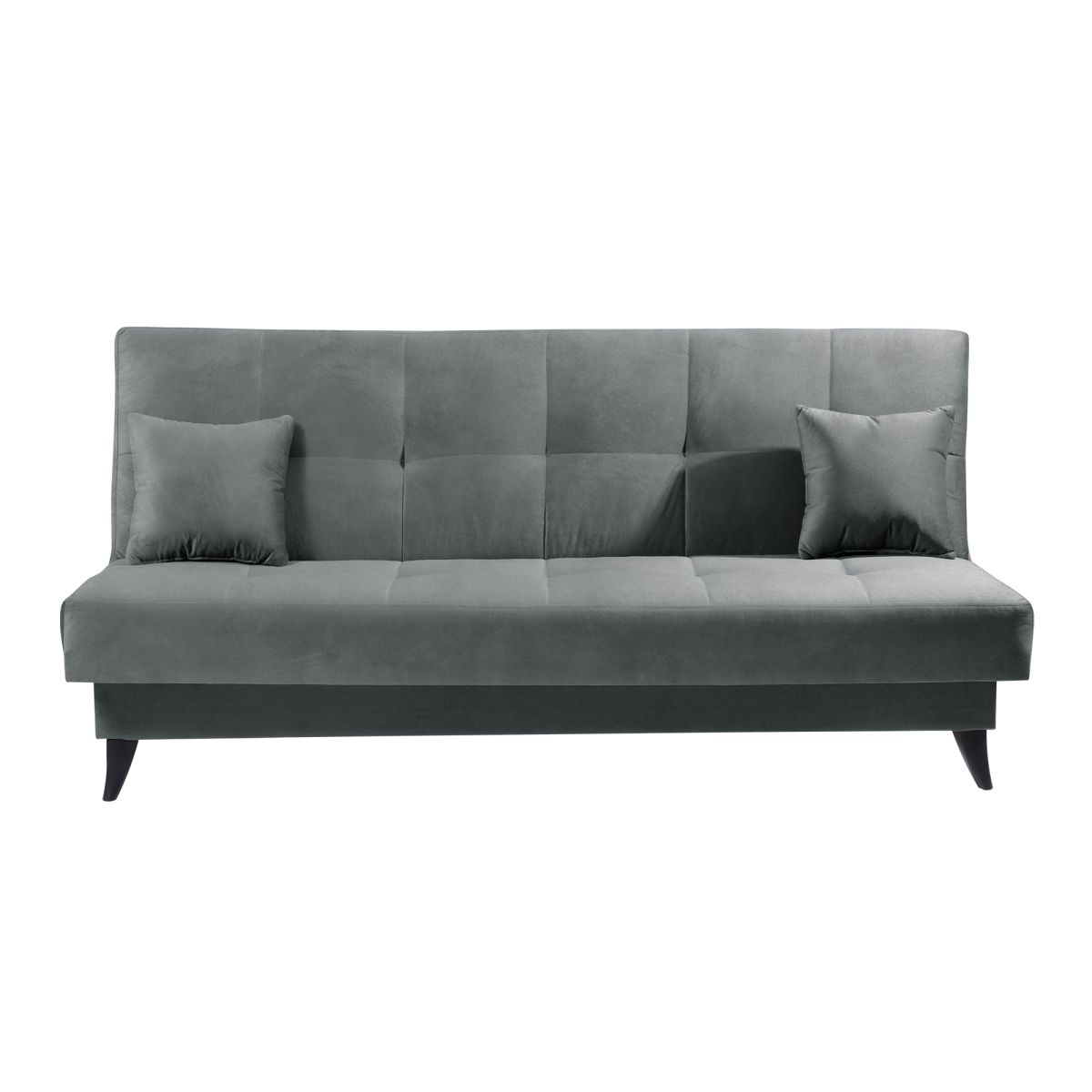 Material: ţesătură Asti 23 Rezistenţa la frecare a ţesăturii conform testului Martindale: 90.000 de cicluri Culoare: gri Dimensiuni (LxAxÎ): 199x91x92 cm Suprafaţa pentru dormit (LxL): 116x199 cm Înălţime scaun: 46 cm Adâncime scaun: 55 cm Extensibilă Cu spaţiu de depozitare Capacitate de susţinere per persoană: 90 kg Înălţimea compartimentului inferior de la podea: 13 cm 2 perne decorative Dimensiuni perne (LxL): 37x37 cm Picioare din plastic Culoare picioare: neagră Umplutura: arcuri de oţel/spumă poliuretanică Livrat dezasamblat