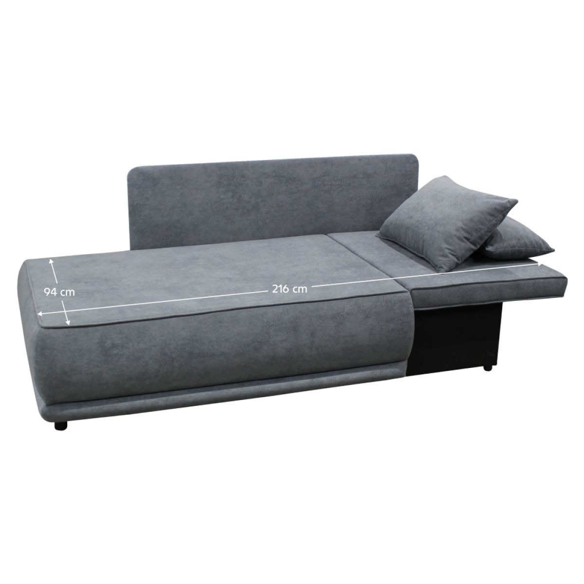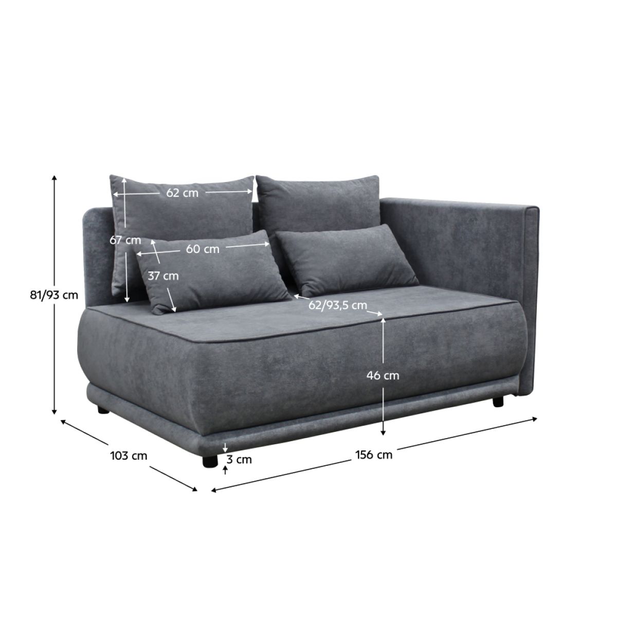 Material: ţesătură Gerra 70 Rezistenţa ţesăturii la frecare conform testului Martindale: 40.000 de cicluri de frecare Culoare: gri Dimensiuni (lxAxh): 157x100x80/85 cm Suprafaţa pentru dormit (lxL): 90x216 cm Înălţime scaun: 43 cm Adâncimea părţii de şezut: 54/76 cm Portanţă per persoană: 90 cm Pe picioare Material picioare: plastic Culoare picioare: neagră Înălţimea compartimentului inferior de la podea: 3 cm Umplutură: spumă T30 Extensibilă Spaţiu de depozitare Perne incluse în set Dimensiunile pernelor mari (lxh): 67x62 cm Dimensiunile pernelor mai mici (lxh): 37x60 cm Versiune pe dreapta Practică Modernă Livrat dezasamblat