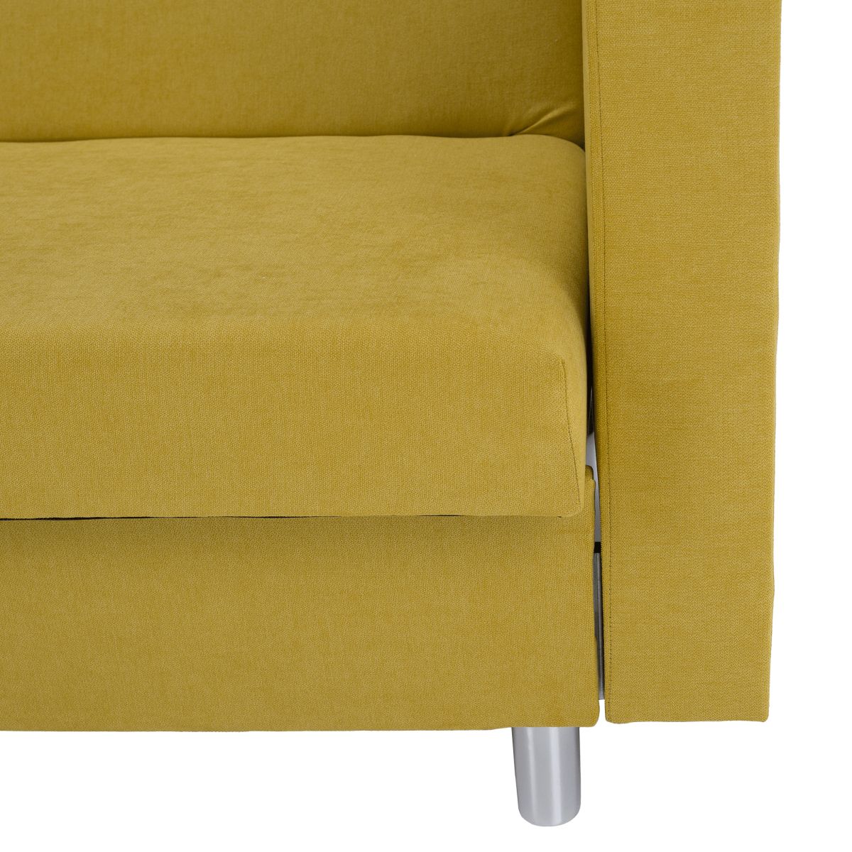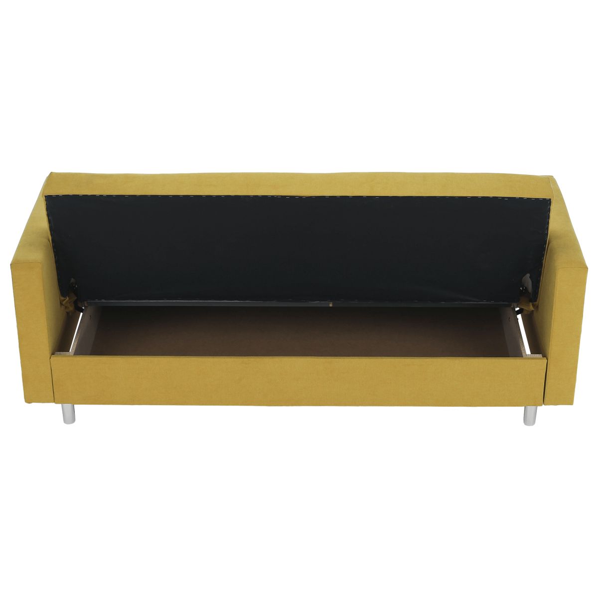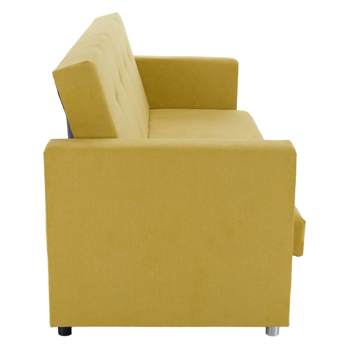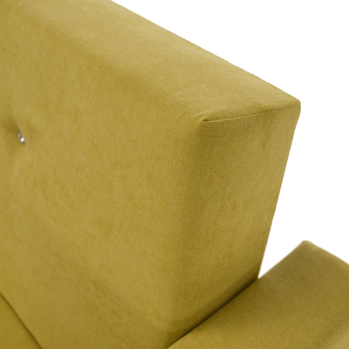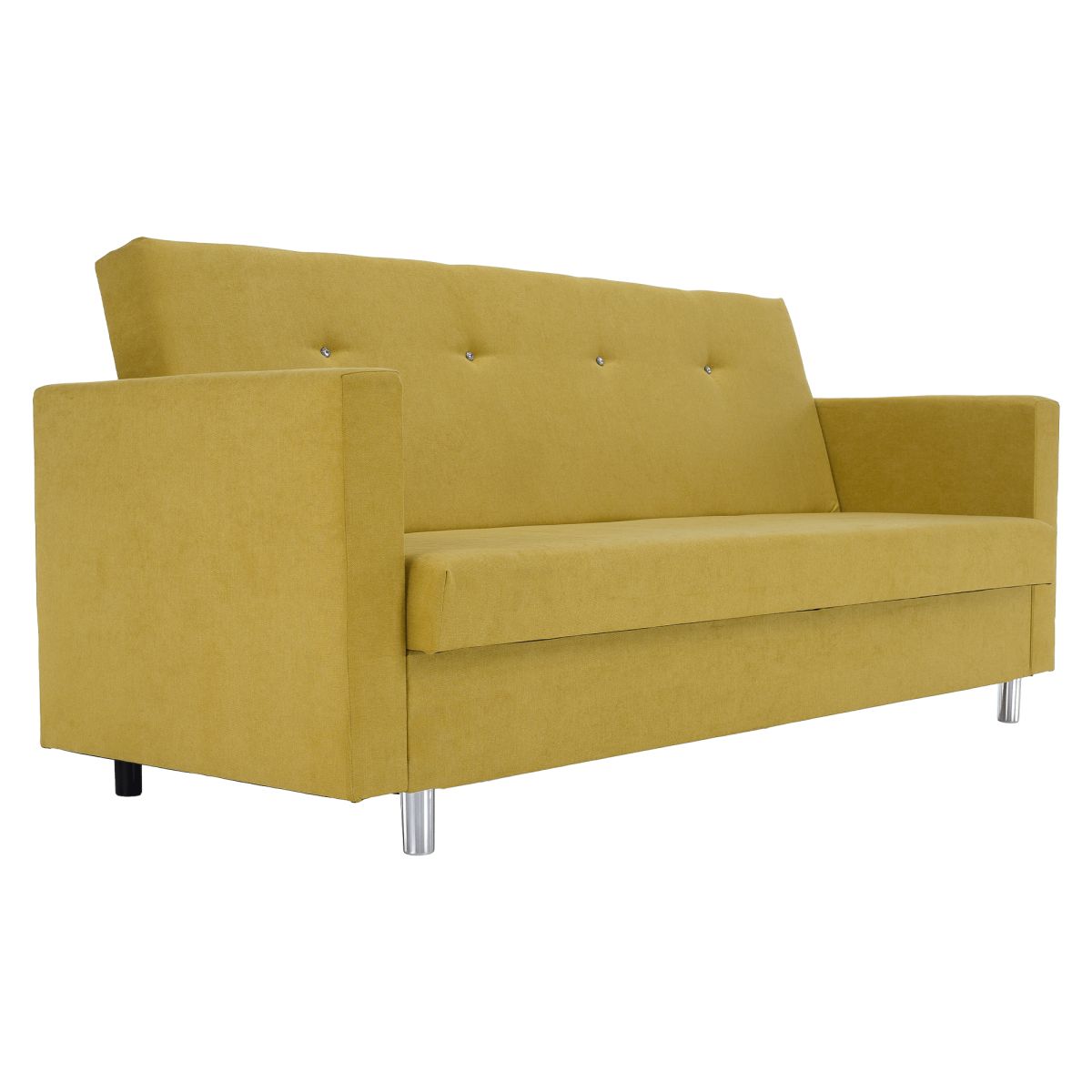 Material: ţesătură Soro 40 Rezistenţa ţesăturii la frecare conform testului Martindale: 90 000 de cicluri de frecare Culoare: galbenă Dimensiuni (lxAxh): 192x80x100 cm Suprafaţa de dormit (lxL): 112x192 cm Înălţime părţii de şezut: 37 cm Adâncimea părţii de şezut: 57 cm Cu picioare Materialul picioarelor: plastic Culoare picioarelor: argintiu Înălţimea compartimentului inferior de la podea: 5 cm Portanţă pe persoană: 90 kg Umplutură: spumă Cusături decorative cu elemente de design Extensibilă Spaţiu de depozitare Practică Modernă Livrat dezasamblat