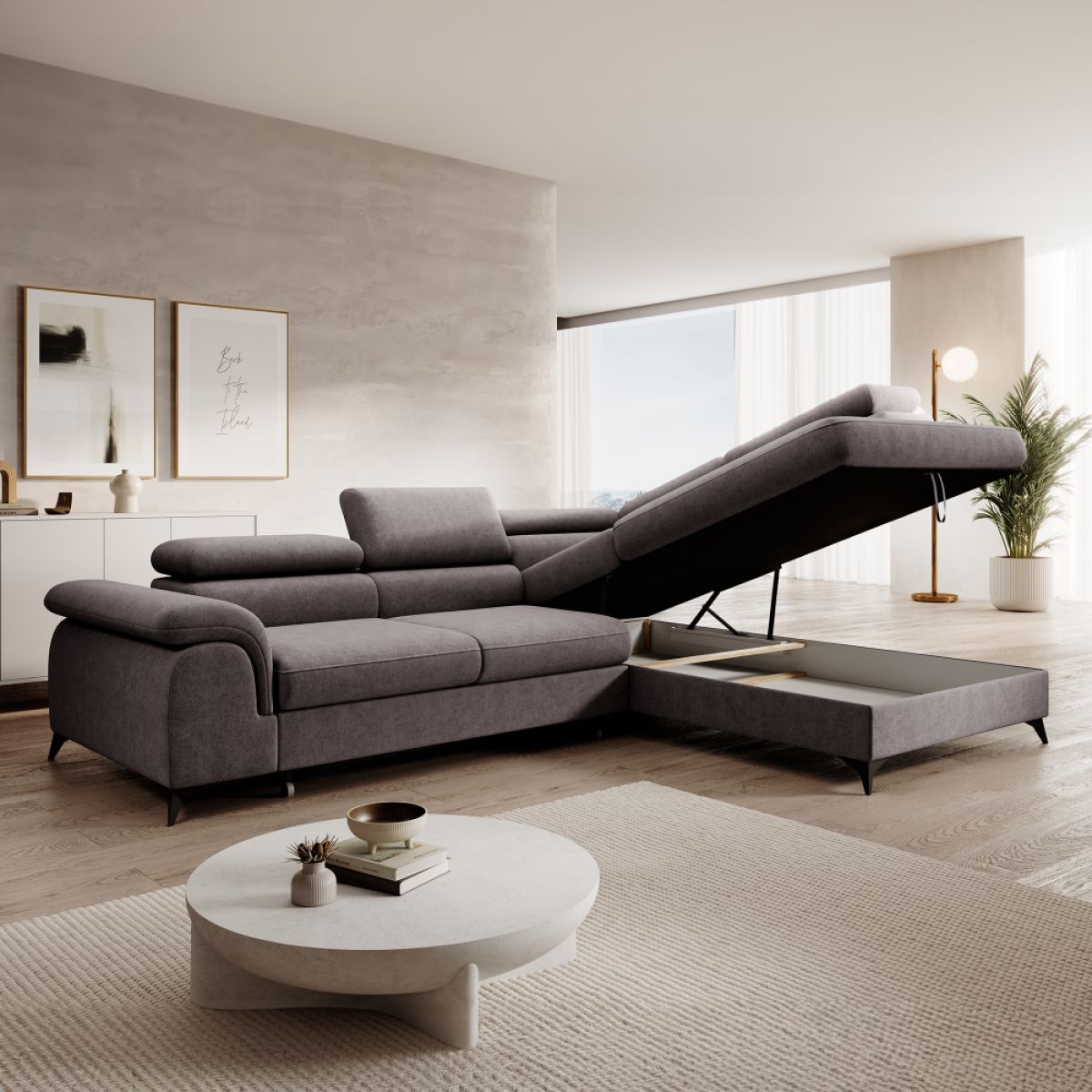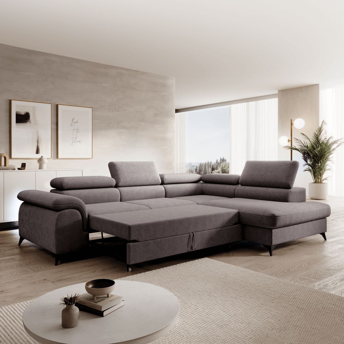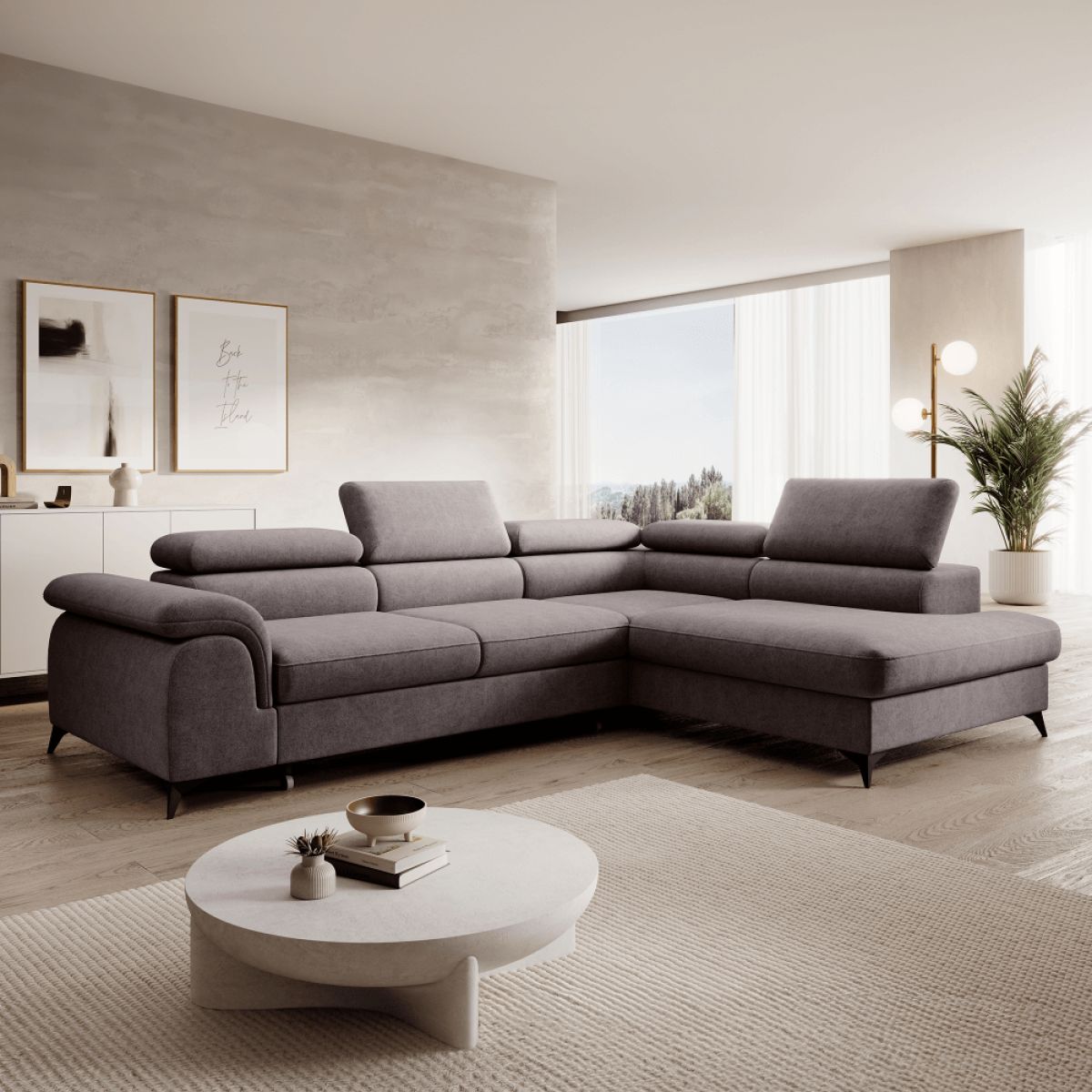 Canapea extensibilă, gri-maro, dreapta, PONY ROH