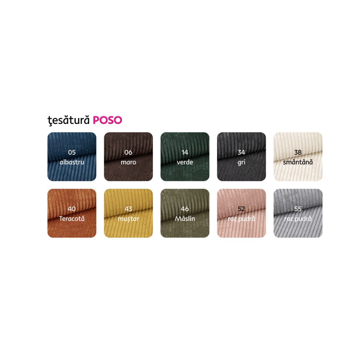 Material: ţesătură Poso 03 Rezistenţa ţesăturii conform testului Martindale: 90.000 de cicluri de frecare Culoare: gri-maro Taupe Dimensiuni (LxAxÎ): 235x109x80/88 cm Înălţime scaun: 45 cm Suprafaţa pentru dormit (LxL): 155x192 cm Înălţimea spaţiului inferior de la podea: 7 cm Adâncimea şezutului: 64/89 cm Înălţimea cotierei: 62 cm Dimensiuni perne mari (LxL): 97x45 cm Dimensiuni perne mici (LxL): 40x40 cm Picioare din plastic Culoarea picioarelor: argintie Umplutură: arcuri ondulate / spumă poliuretanică Capacitatea de încărcare pe persoană: 90 kg Tapiţată integral Extensibilă Cu spaţiu de depozitare Cu perne Practică Modernă La comandă Termenul de livrare este de 6-8 săptămâni Livrată dezasamblată Vă oferim posibilitatea de a alege dintre 10 culori ale ţesăturii Poso la un preţ de 4.239 Lei. Pentru comenzi personalizate este necesară plata unui avans de 10% din suma totală. După achitarea avansului, comanda dumneavoastră va intra în producţie. Termenul de livrare este de 6-8 săptămâni.