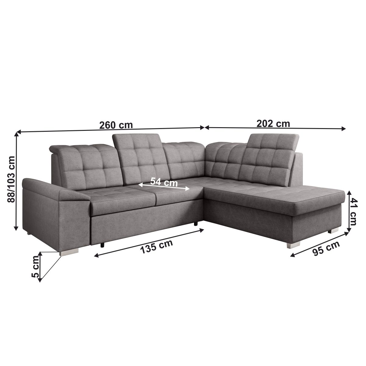 Material tapiţerie: ţesătură Soro 24 Rezistenţa la frecare a ţesăturii conform testului Martindale: 90.000 Culoare tapiţerie: gri-maroniu Dimensiuni (LxAxÎ): 260x202x88/103 cm Suprafaţa pentru dormit (LxL): 120x190 cm Înălţime scaun: 41 cm Adâncime scaun: 54 cm Lăţime otoman: 95 cm Lăţime scaun: 135 cm Cu picioare Materialul picioarelor: plastic Culoarea picioarelor: argintiu Înălţimea compartimentului inferior de la podea: 5 cm Capacitate de susţinere per persoană: 90 kg Umplutura: arcuri ondulate + spumă poliuretanică, Colţar extensibil tapiţat integral, Cu spaţiu de depozitare, Tetiere ajustabile, Variantă pentru partea dreaptă, Livrat dezasamblat, Posibilitatea de a alege dintre 7 nuanţe de culoare ale ţesăturii Soro la preţul de 6.849.- cu termenul de livrare de 6-8 săptămâni. La o comandă individuală, este necesară o plată în avans de 10% din suma respectivă. După achitarea avansului, comanda dumneavoastră va intra în producţie.