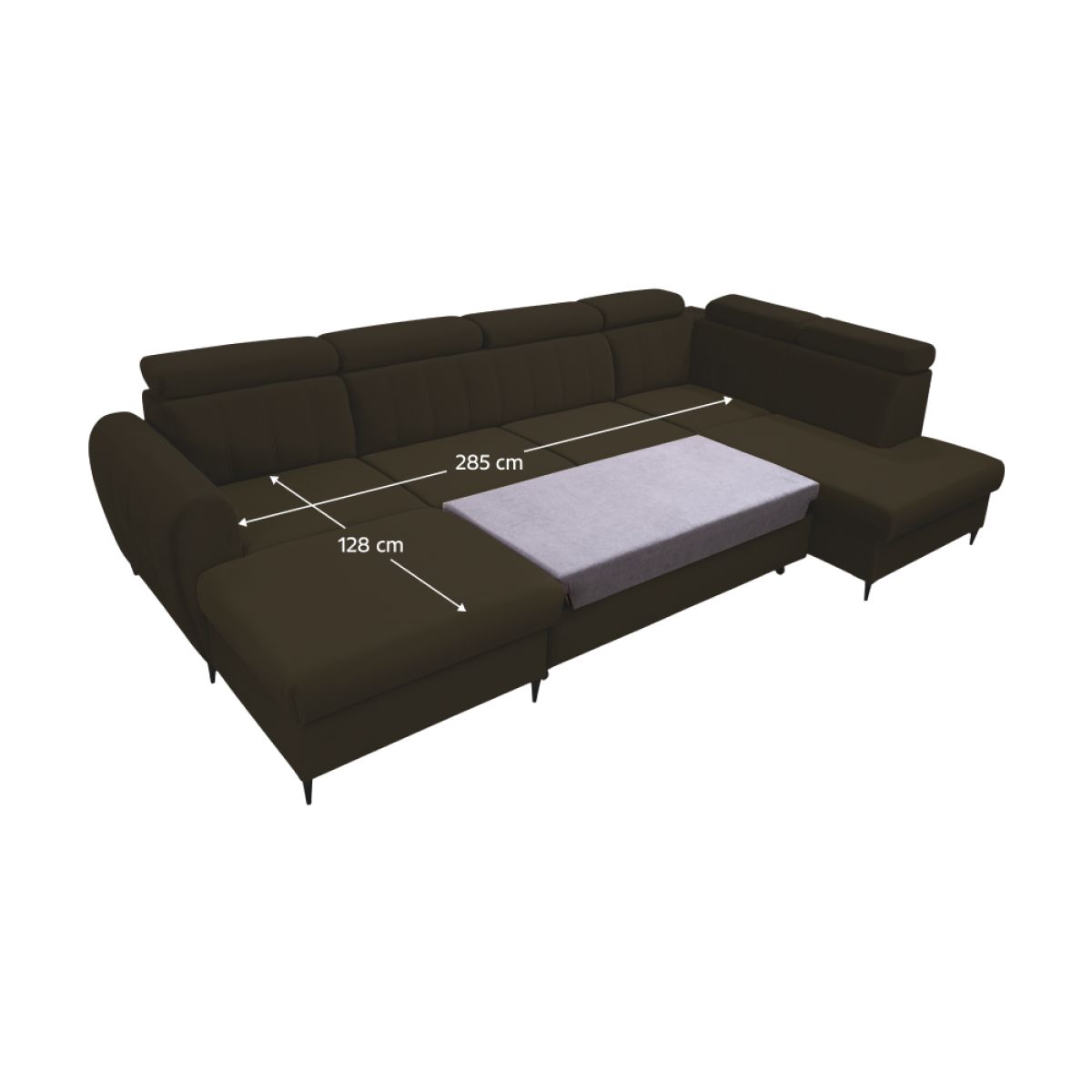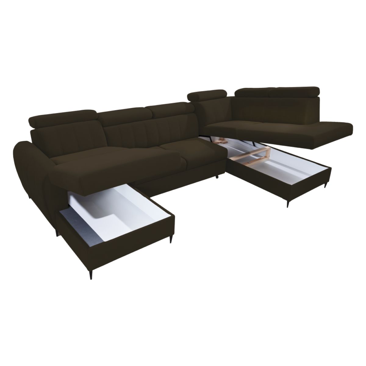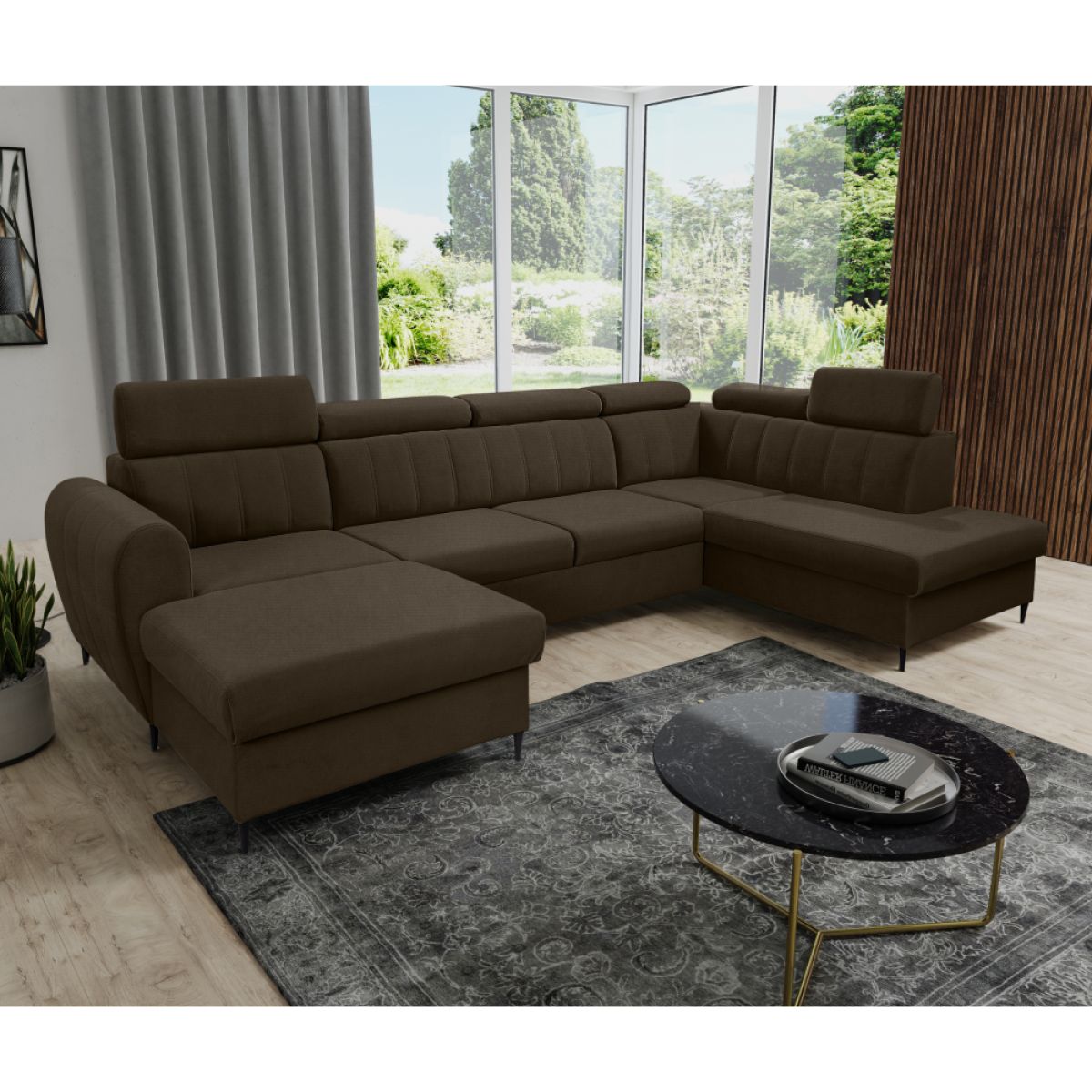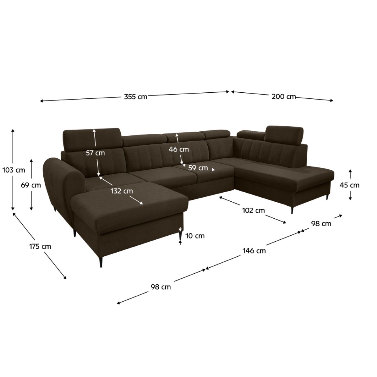 Material tapiţerie: stofă Paros 04 Rezistenţa la uzură a stofei conform testului Martindale: 50 000 Culoarea tapiţeriei: maro Dimensiuni (LxAxA): 355x200/175x103 cm Suprafaţa de dormit (LxA): 128x285 cm Înălţimea de şezut: 45 cm Adâncimea de şezut: 59 cm Lăţimea otomanului: 98 cm Lăţimea scaunului: 146 cm Înălţimea raftului inferior de la podea: 10 cm Pe picioare Materialul picioarelor: metal Culoarea picioarelor: negru Capacitate de încărcare pe persoană: 90 kg Umplutura: arcuri falista Extensibilă Colţar Formă de U Complet tapiţată Variantă stânga Cu spaţiu de depozitare Tetiere reglabile Se livrează în stare dezasamblată Poate fi comandat în 4 culori de ţesătură Paros, cu un termen de livrare de 6-8 săptămâni. Pentru comenzi individuale, este necesar un depozit de 10% din suma dată. După plata avansului, cererea dumneavoastră va fi introdusă în producţie.