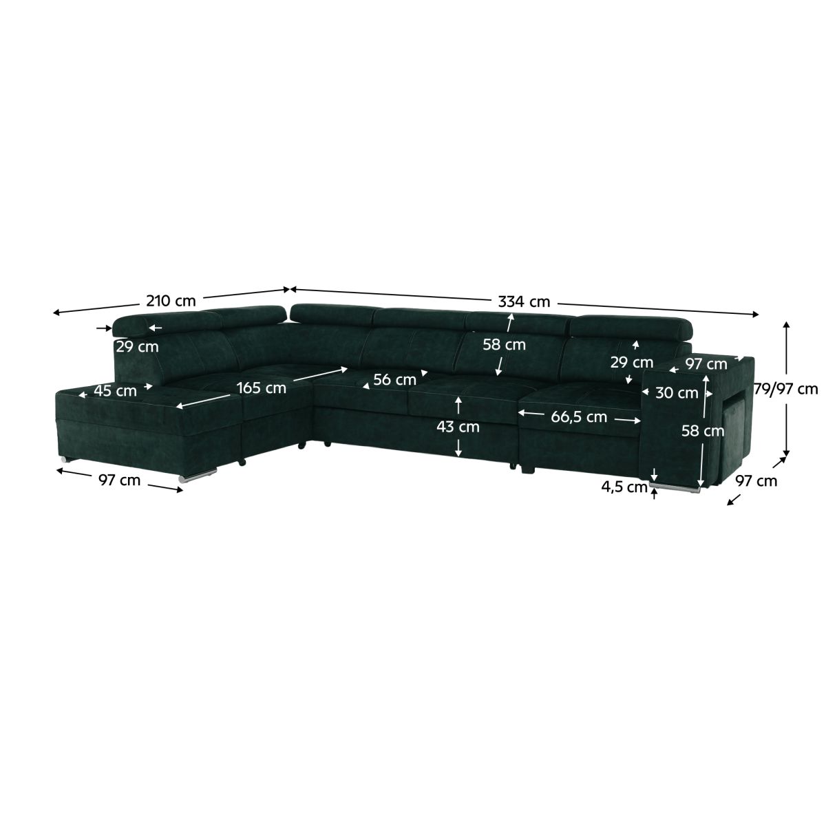 Material tapiţerie: ţesătură Country 11 Rezistenţa ţesăturii la frecare conform testului Martindale: 65 000 abraziuni Culoare: smarald Materialul construcţiei: lemn de pin/lemn de fag/placă laminată Dimensiuni (lxAxh): 334x210x79/97 cm Suprafaţa pentru dormit (lxL): 130x190 cm Înălţime părţii de şezut: 43 cm Adâncimea părţii de şezut: 56 cm Dimensiuni otoman (lxA): 97x165 cm Dimensiuni cotieră (lxAxh): 30x97x58 cm Cu scaun Dimensiunile taburetului (lxAxh): 40x33x48 cm Complet tapiţată Extensibilă De colţ Cu spaţiu de depozitare Varianta pe dreapta Pe picioare Material picioare: metal Culoarea picioarelor: crom Înălţimea spaţiului inferior faţă de podea: 4,5 cm Tetiere poziţionabile Poziţionare 5 grade a tetierelor Umplere: arc falista/spumă pur/molitan Livrat dezasamblat Posibilitatea de a comanda în 8 nuanţe de culoare din ţesătură Country la preţul de 8 085 Lei cu termen de livrare 6-8 săptămâni. Pentru comenzi personalizate este necesară plata unui avans de 20% din suma respectivă. După achitarea avansului, solicitarea dumneavoastră va intra în producţie.