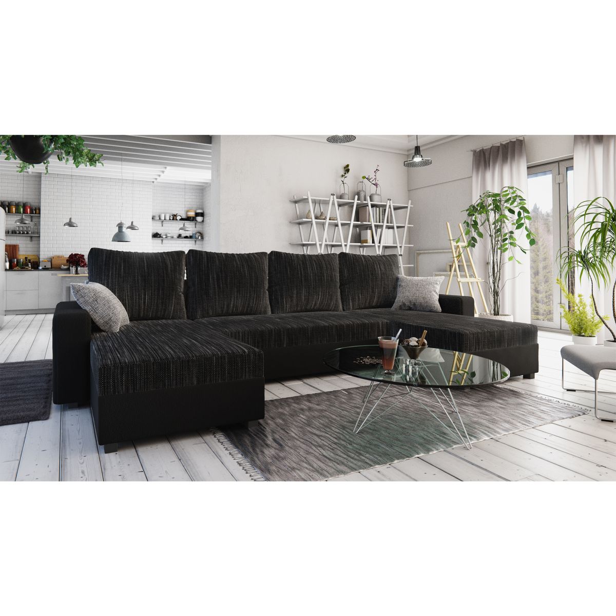 Canapea universală, negru/gri, TRIPOLIS U