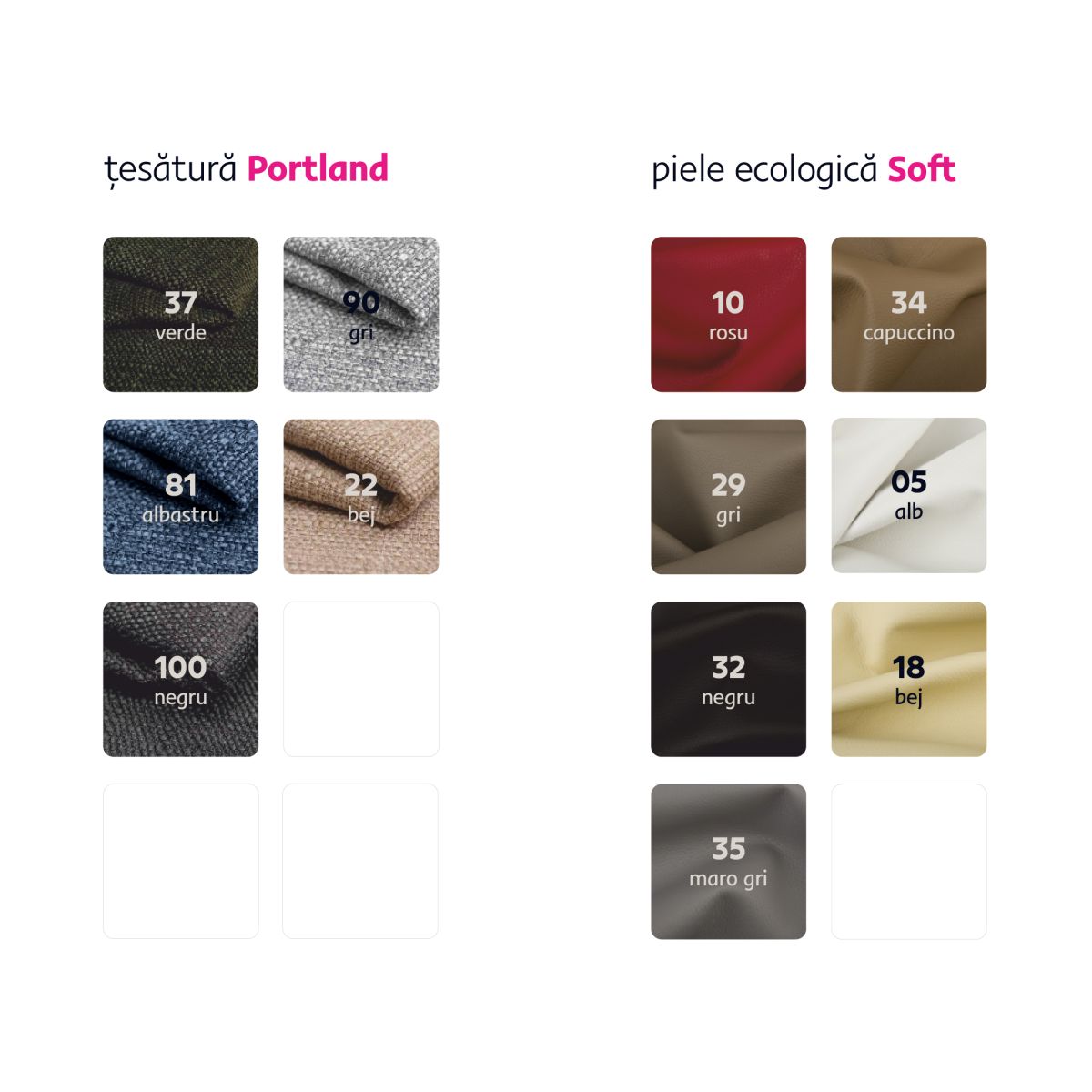 Posibilitatea de a comanda în 5 nuanţe a materialului textil Portland şi în 7 nuanţe de piele ecologică la preţul de 4.899,-.