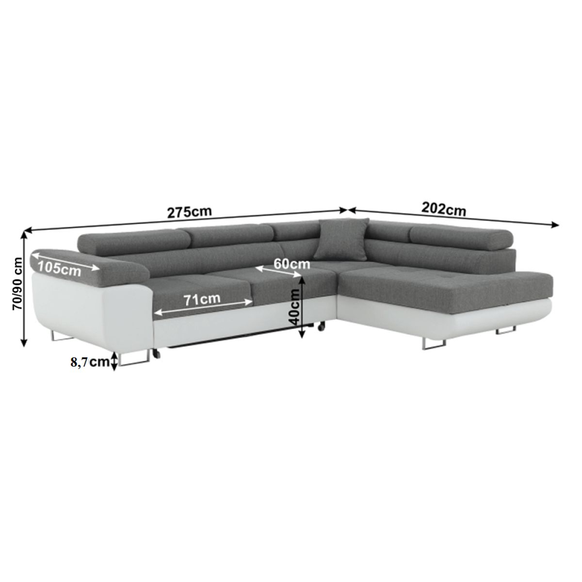 Colţar, alb/ gri, model dreapta, AMARETO NEW
