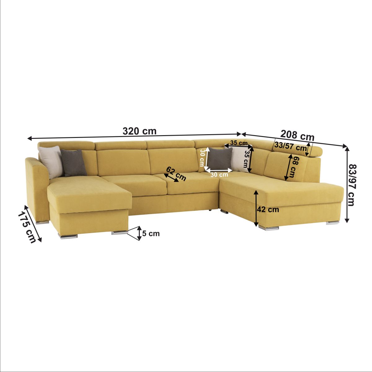 Dimensiuni: (LxAxH): 320x208-175x83-97 cm