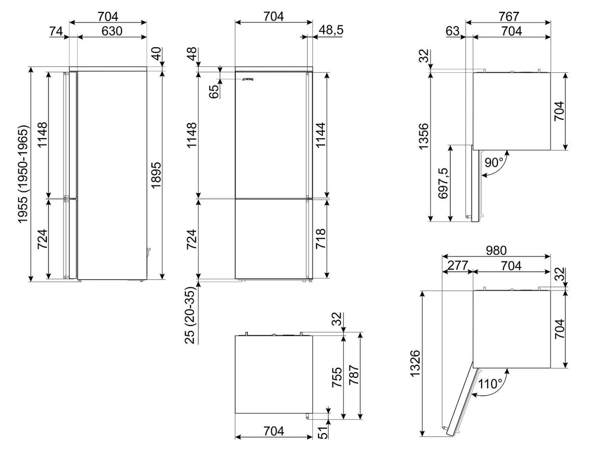 Lățimea produsului cu deschidere maximă a ușilor: 975