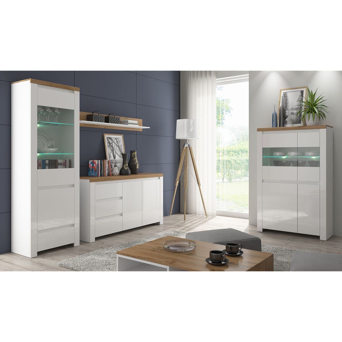 Comodă 2D3S, alb lucios/ stejar wotan, VILGO