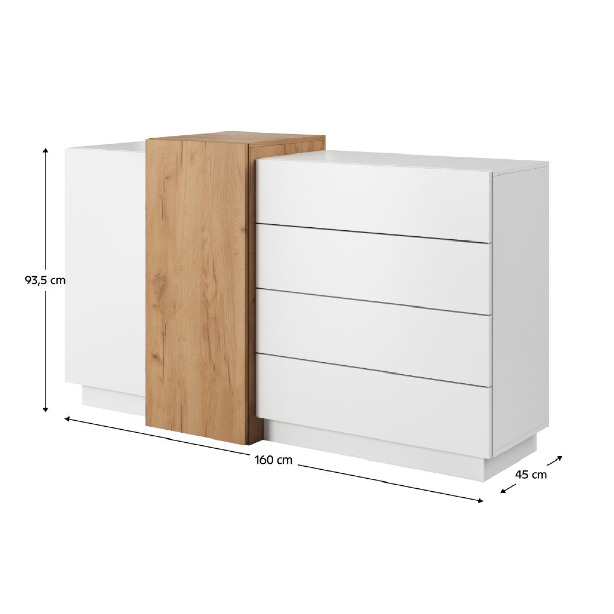 Comodă, alb/ stejar, TRIO 2