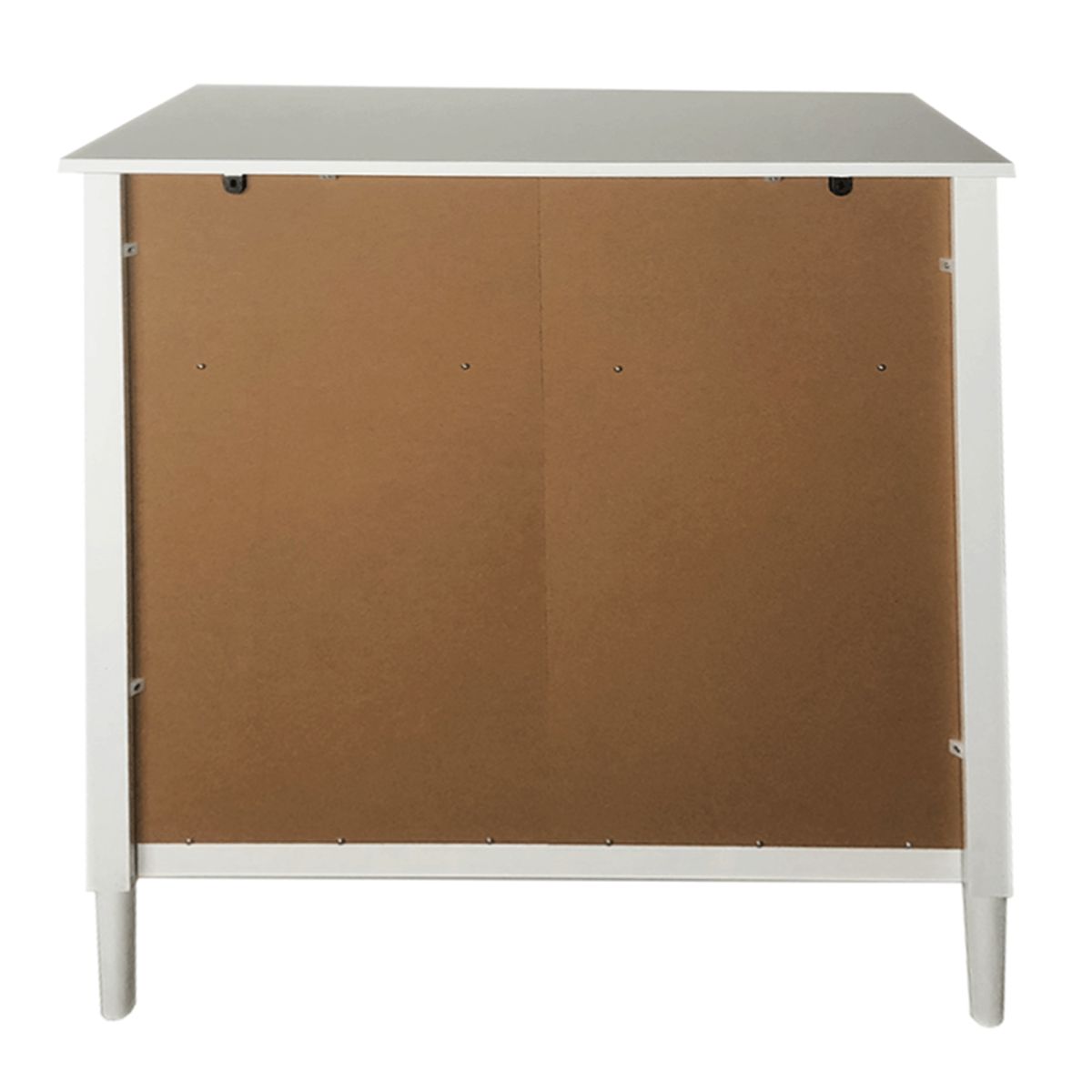 Material: MDF Culoarea: albă Dimensiuni (LxAxÎ): 80x40x95cm Grosimea materialului: 1,5 - 3,7 cm Trei sertare mai mari Două sertare mai mici Mânere din lemn Culoarea mânerelor: neagră Capacitate de încărcare: 30 kg Capacitatea de încărcare a sertarului: 10 kg Pe picioare Înălţimea picioarelor: 15 cm Se recomandă fixarea la perete Stil provensal Se livrează în formă dezasamblată