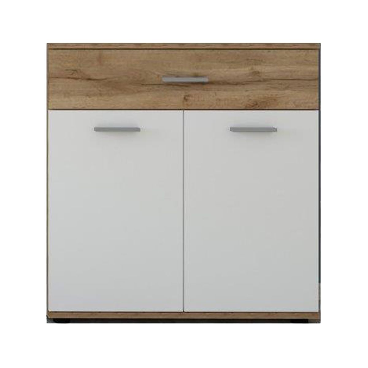 Material: PAL melaminat / muchii din ABS Culoare: stejar Wotan / albă Dimensiuni (LxAxÎ): 80x35x84 cm Grosime material: 1,6cm Cu raft Cu două uşi Cu sertar Cu mânere din plastic argintiu Capacitate de încărcare a plăcii superioare: 10 kg Capacitatea de încărcare a sertarului: 5 kg Picioare din plastic Vă recomandăm să fixaţi mobilierul pe perete Se livrează dezasamblat