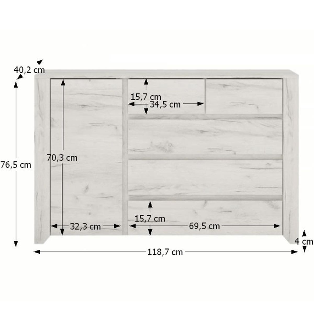 Comodă tip 4, alb craft, set ANGEL