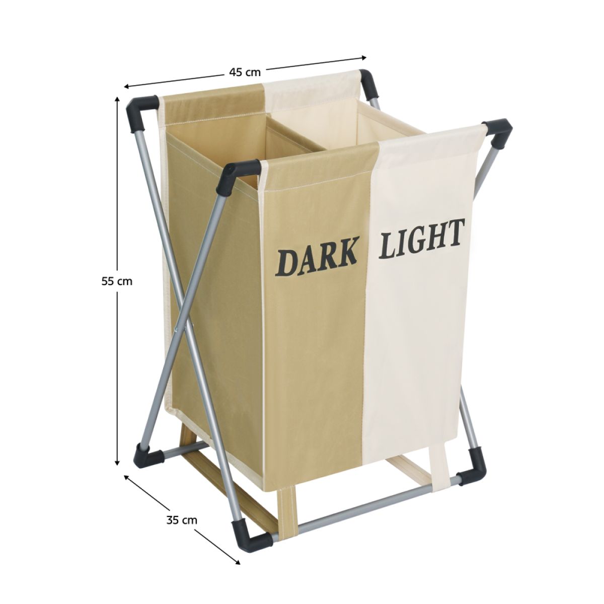Material: material textil/metal Culoare: bej/maro Dimensiuni (lxhxA): 45x35x55 cm Greutate susţinută: 15 kg paţiu de depozitare practic Mânere din pânză pentru o manipulare uşoară Pliabil
