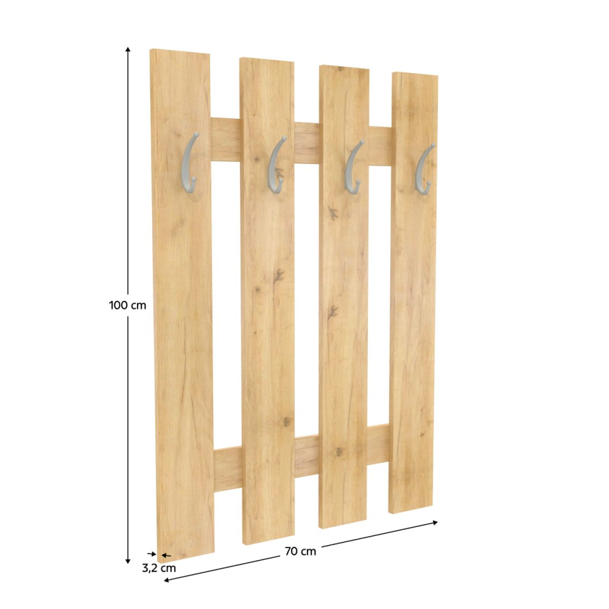 Cuier perete, culoare: stejar artizanal, material: PAL melaminat, dimensiuni (LxAxH) 70x100x3,2 cm. Grosimea materialului: 18 mm Livrat demontat.