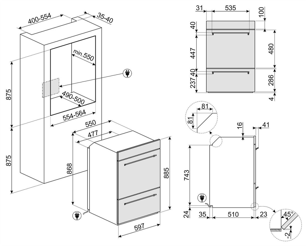 Dimensiunea nișei necesară pentru instalare (mm): 554X875X560