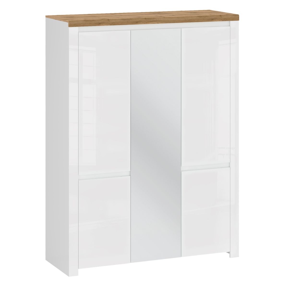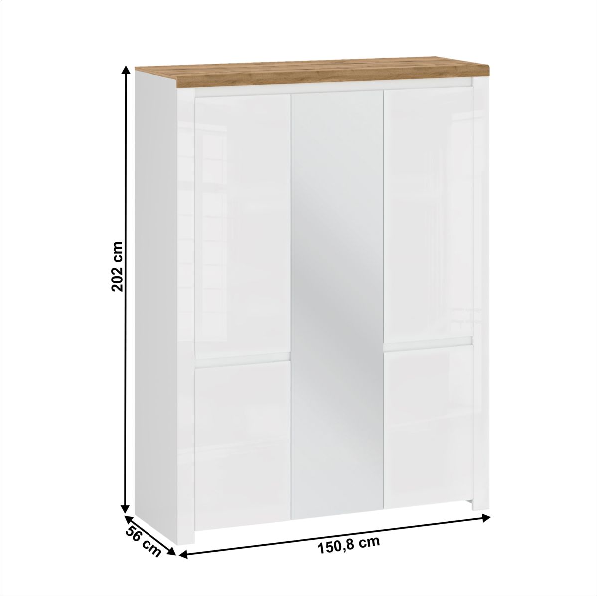 Dulap 5D cu oglindă, alb lucios/ stejar wotan, VILGO