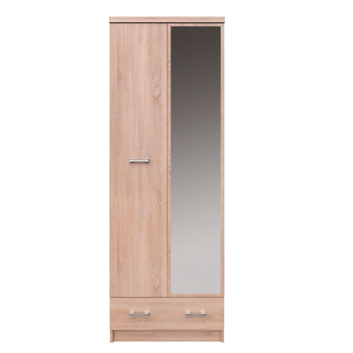 Dulap cu oglindă 2D1S/60 TOPTY TIP 38 Material: PAL melaminat Culoare: stejar Sonoma Dimensiuni (LxAxÎ): 60x33x183 cm Cu două uşi Cuier Un sertar Oglindă Se recomandă ataşarea mobilierului de perete Se livrează dezasamblat