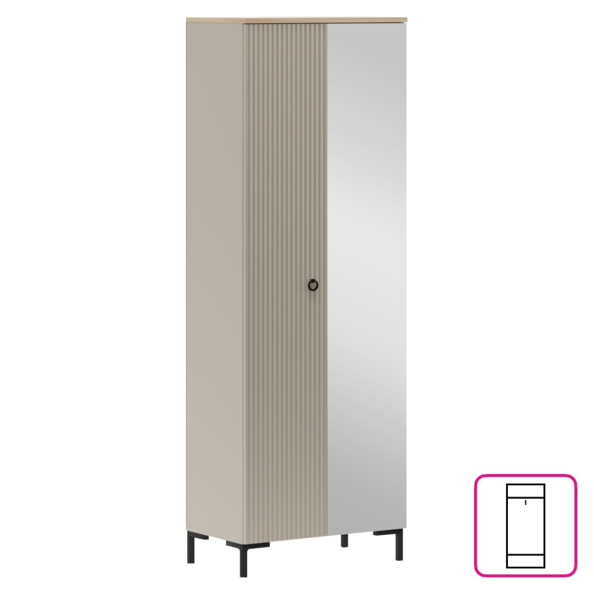 Material: DTD laminat/MDF înfoliat/sticlă Culoare: gri-maroniu Taupe/stejar silverjack Dimensiuni (lxAxh): 70x40,7x199,1 cm Grosimea materialului DTD: 1,6-1,8 cm Grosimea materialului MDF: 1,9 cm Uşă dublă Cu oglindă Cu poliţe Bară de umeraşe extensibilă Portanţă poliţă: 5 kg Uşă universală Cu mânere Material mâner: metal Culoare mâner: negru mat Pe picioare Înălţimea piciorului: 12 cm Material picior: plastic Culoare picior: negru mat Uşi decorative frezate Design modern Recomandăm fixarea pe perete Livrat dezasamblat