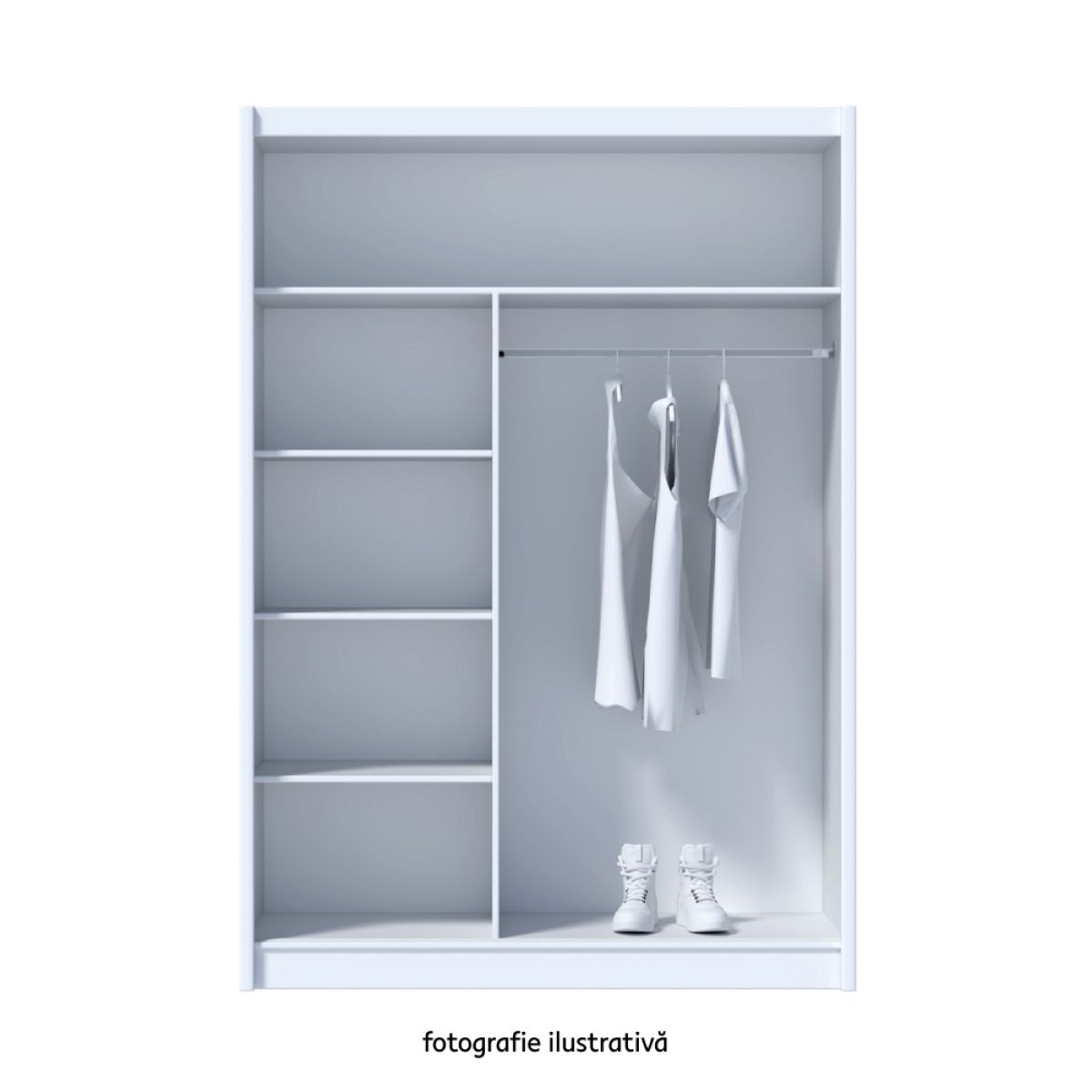 Material: PAL melaminat / margini ABS / fâşii MDF / sticlă Culoare: neagră / stejar craft Dimensiuni (LxAxÎ): 150x61x215 cm Grosimea PAL: 1,6 cm Grosime ABS: 0,045 cm Capacitatea de încărcare a raftului: 10 kg Capacitatea de încărcare a raftului lung: 20 kg Capacitate de încărcare a barei pentru umeraşe: 15 kg Capacitate sertar: 3 kg Cu uşi glisante Cu mânere Cu oglindă Zonă cu rafturi Bară pentru umeraşe Uşă dublă Livrat dezasamblat