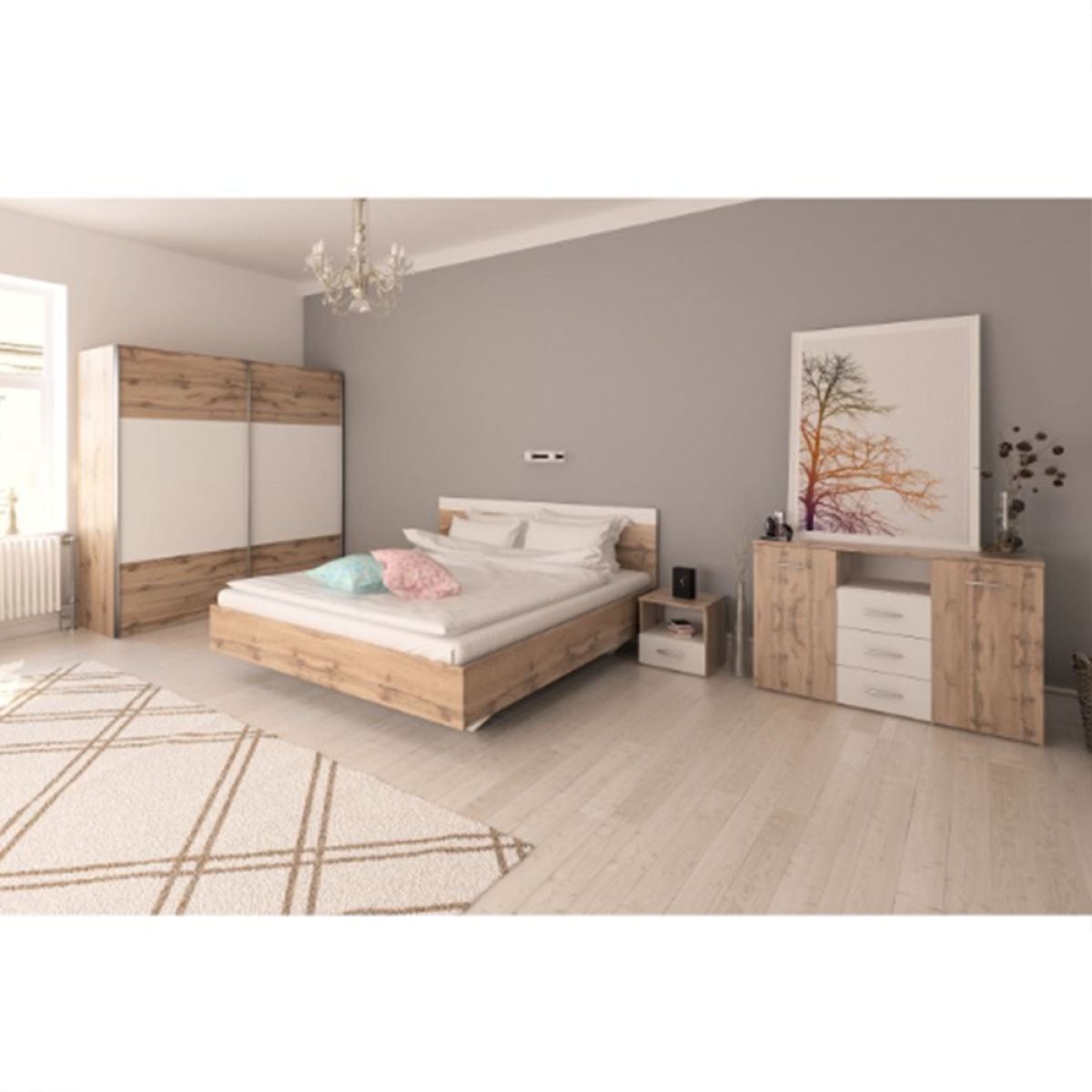 Dulap cu uşi glisante, stejar wotan/ alb, set GABRIELA