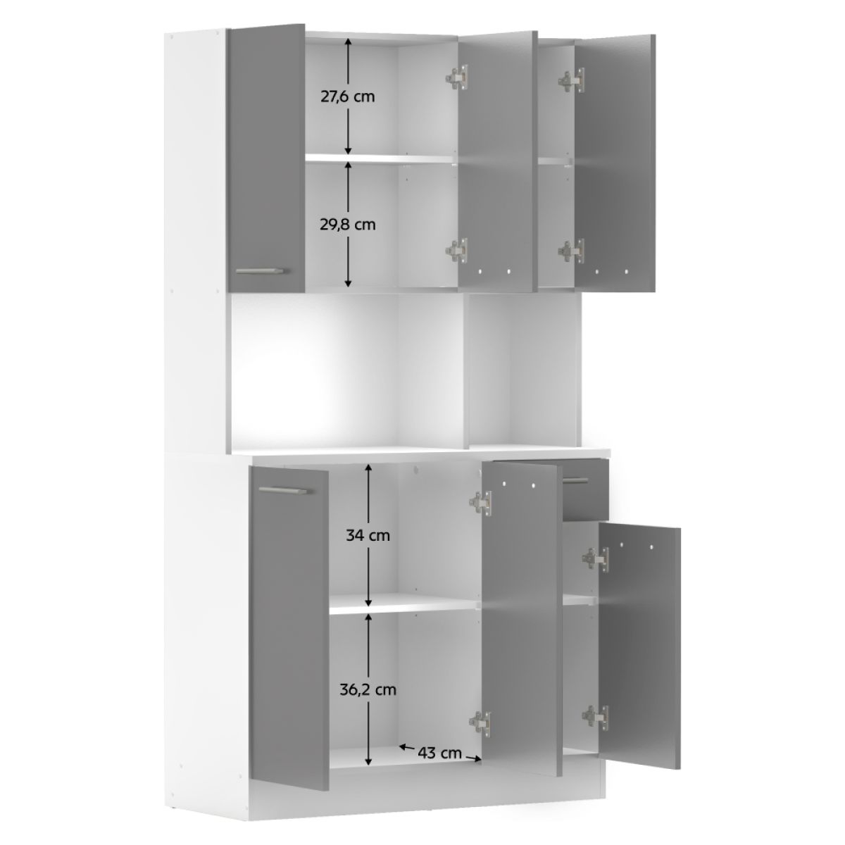 Dulap de bucătărie cu şase uşi, alb/grafit, PELION NEW