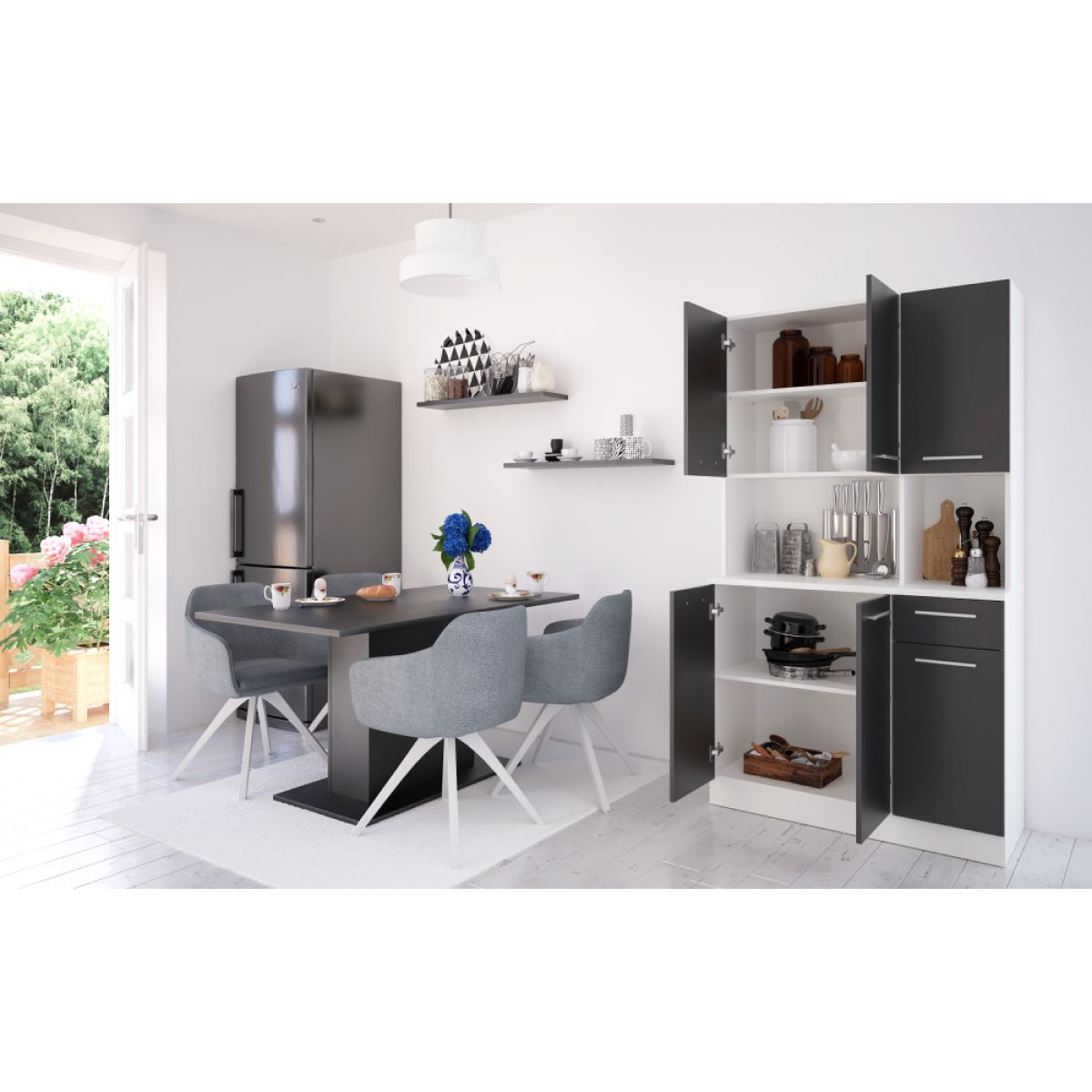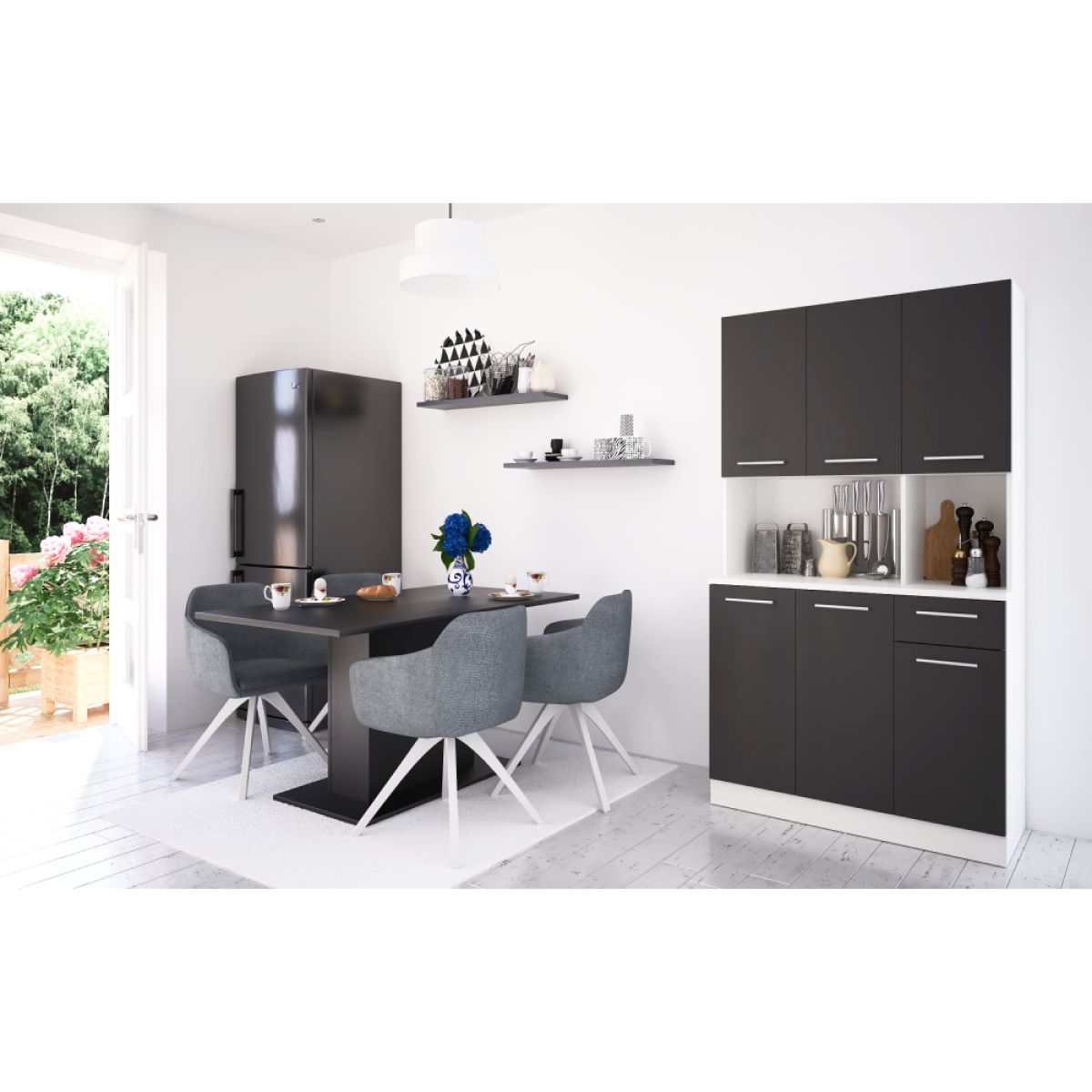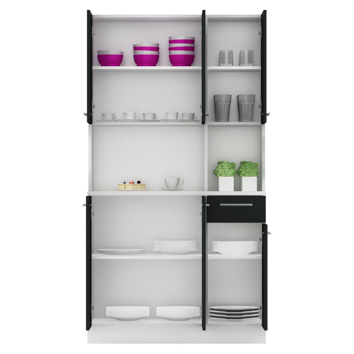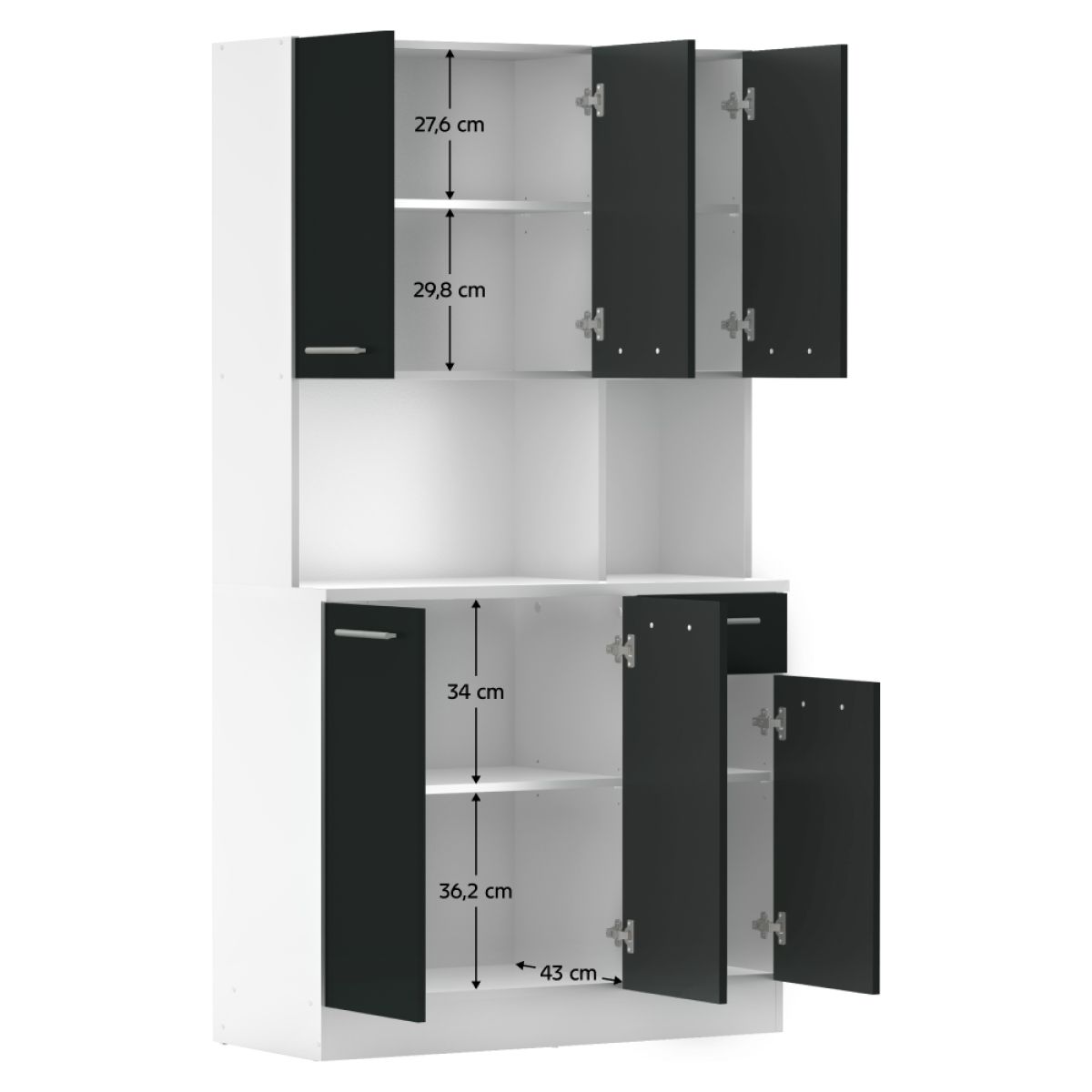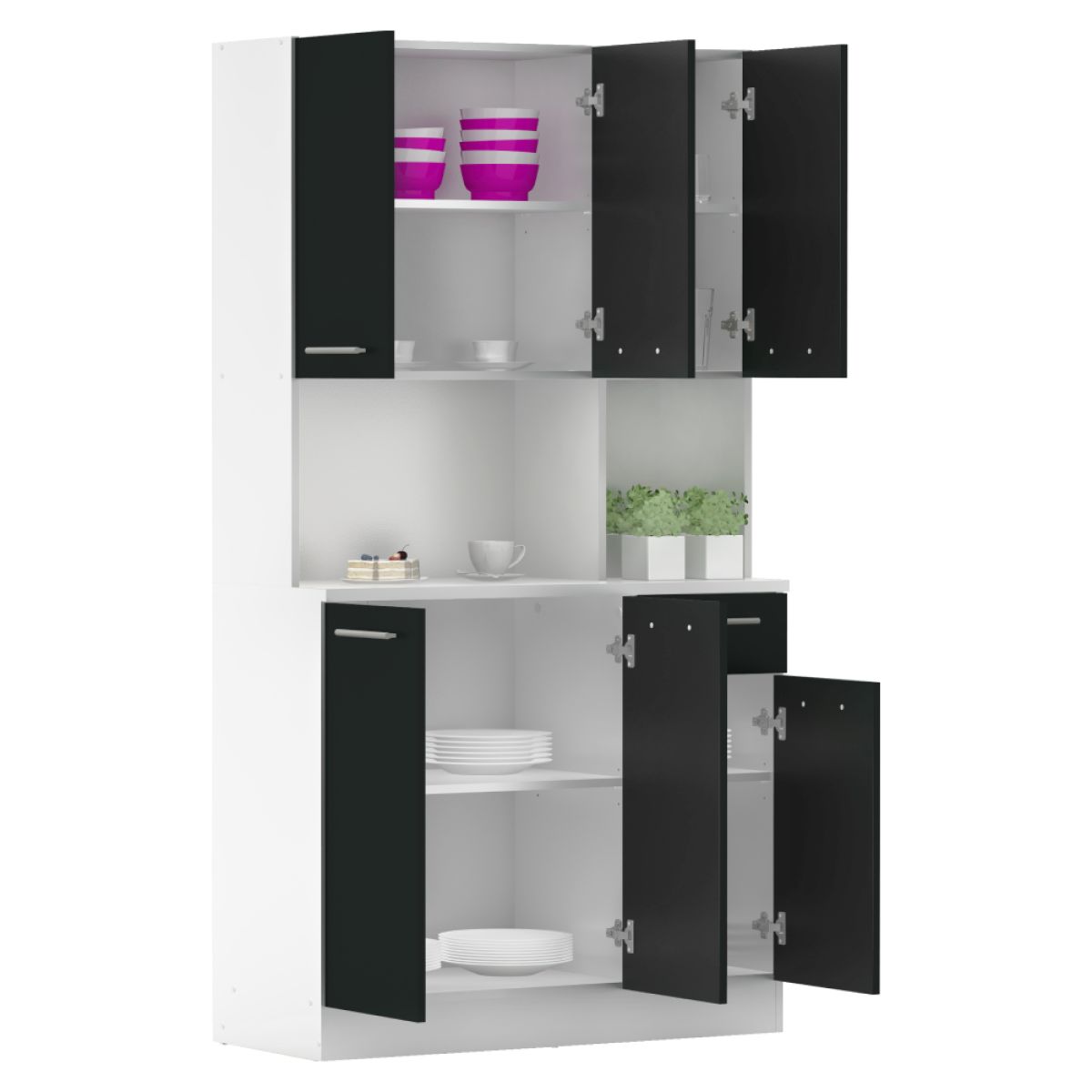 Dulap de bucătărie cu şase uşi, alb/negru, PELION NEW