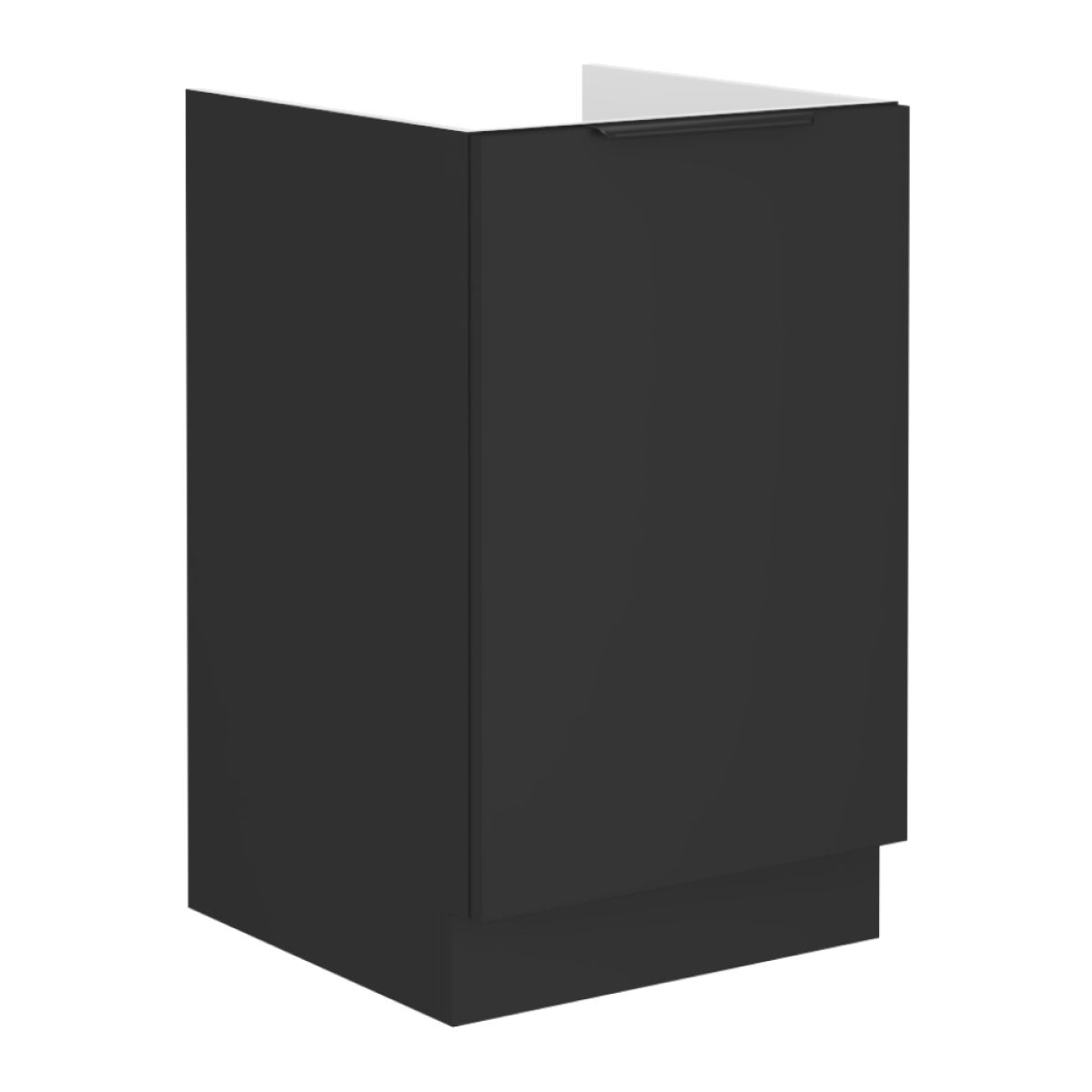 Material: DTD laminat Culoarea uşii: negru Culoarea corpului: negru mat Dimensiuni (Lxlxh): 50x52x82 cm Grosime material: 1,6 cm Cu o uşă Cu mâner Culoarea mânerului: aluminiu Cu şină inferioară/plintă Design modern Fără blat de lucru Livrat fără chiuvetă Sistem de închidere silenţioasă a uşii Chiuvetă universală LAY ON poate fi achiziţionată Livrat dezasamblat Dulapurile din sectorul inferior sunt livrate inclusiv şina inferioară (plintă), fără blat de lucru. Blatul de lucru cu o grosime de 3,8 cm poate fi comandat separat în finisaj de tip stejar artisan la preţul de 339 Lei/ml.