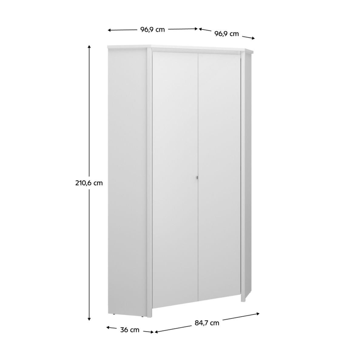Material: PAL melaminat / muchii din ABS Culoare: albă Dimensiuni (LxAxÎ): 84,7x36x210,6 cm Grosimea materialului: 1,6-3,2 cm Două uşi Spaţiu de depozitare 2x Zone pentru umeraşe Capacitatea de încărcare a barei pentru umeraşe: 15 kg Zonă cu rafturi Capacitatea de încărcare a fiecărui raft: 5 kg Picioare din plastic Design modern Vă recomandăm să ataşaţi mobilierul de perete Livrat dezasamblat