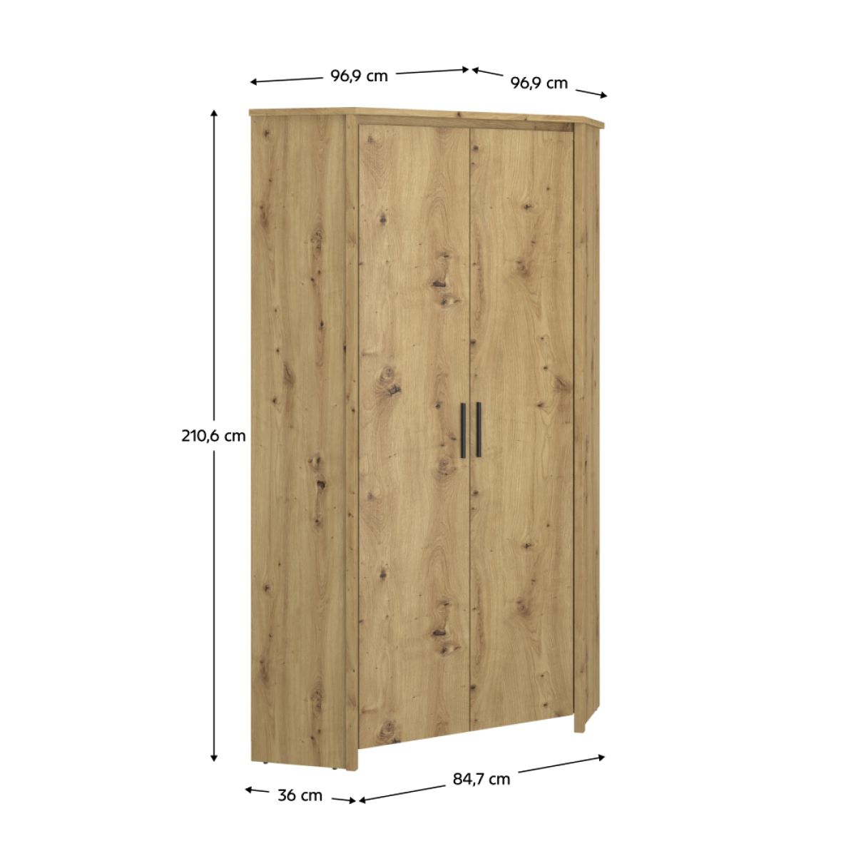 Dulap de colţ 2D, stejar Artisan, AIRON