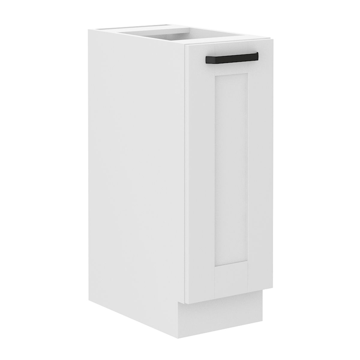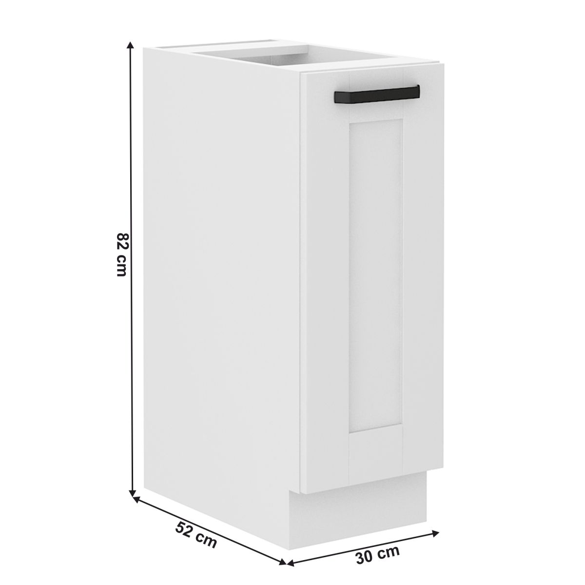 Dulap inferior cu coş glisant LULA 30 D CARGO Material: HDF laminat Culoare: albă Dimensiuni (LxAxÎ): 30x52x82 cm Grosime cadru: 1,6 cm Grosime uşă: 2 cm Mânere metalice, Culoarea mânerului: neagră, Cu şină inferioară/plintă, Dulap fără blat, Design dinamic modern, Livrat dezasamblat, Opţiunea de a cumpăra o chiuvetă universală LAY ON Dulapurile inferioare sunt furnizate împreună cu şina inferioară, Fără blat de lucru. Opţiunea de a achiziţiona blat de lucru din stejar artisan sau marmură roma la preţul de 319/metru liniar. Opţiunea de a achiziţiona o chiuvetă universală LAY ON.