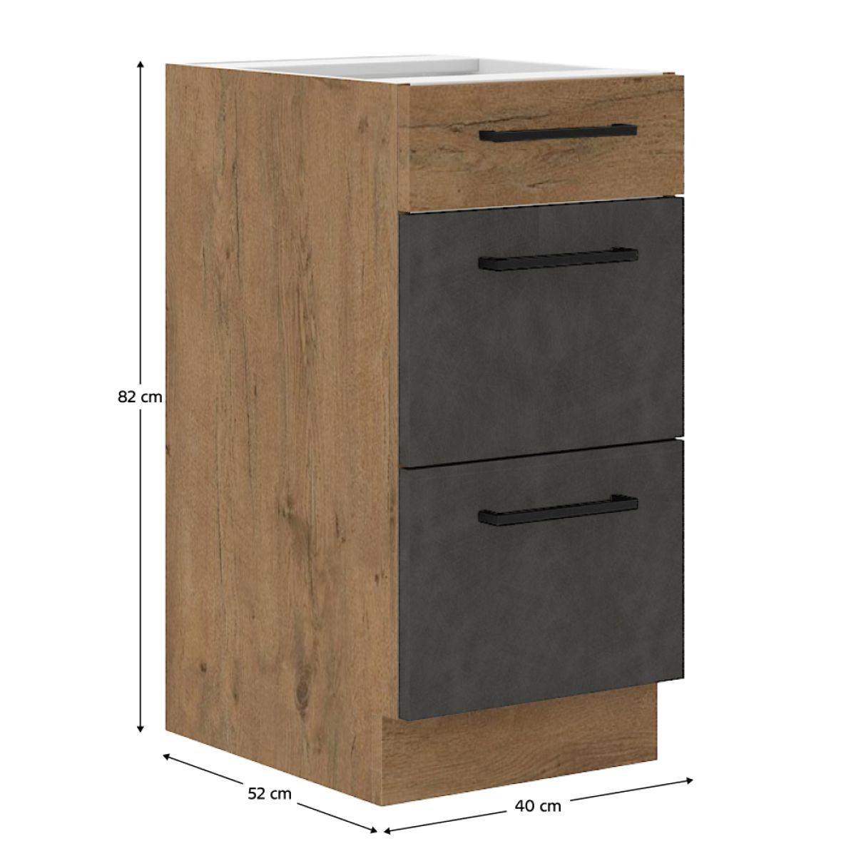 Dulap inferior cu sertare, gri mat/ stejar lancelot, bucătăia VEGA 2