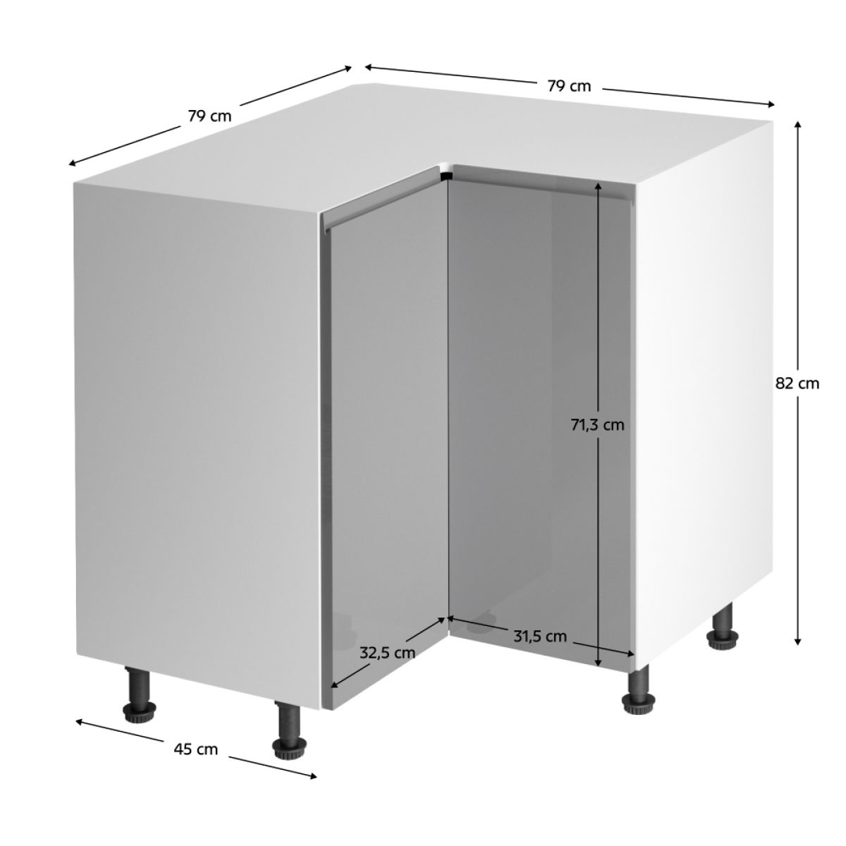 Dulap inferior de colţ, alb/ gri lucios, bucătăria AURORA