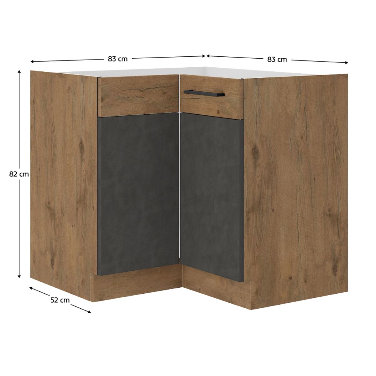 Dulap inferior de colţ, gri mat/ stejar lancelot, bucătăria VEGA 2